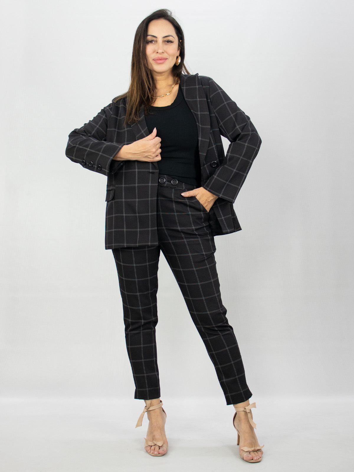 A modelagem do Blazer Michele realça a silhueta de forma única. Fluído, com um caimento reto e corte clássico impecável, ele agrega valor ao look. Possui mangas longas, ombreiras aplicadas, fechamento frontal por abotoamento, bolsos embutidos em sua lateral/frontal, comprimento médio. Uma peça que esbanja elegância.