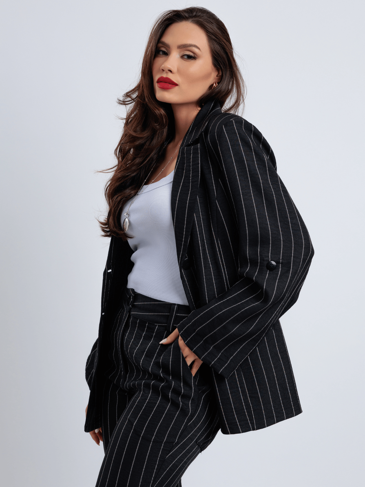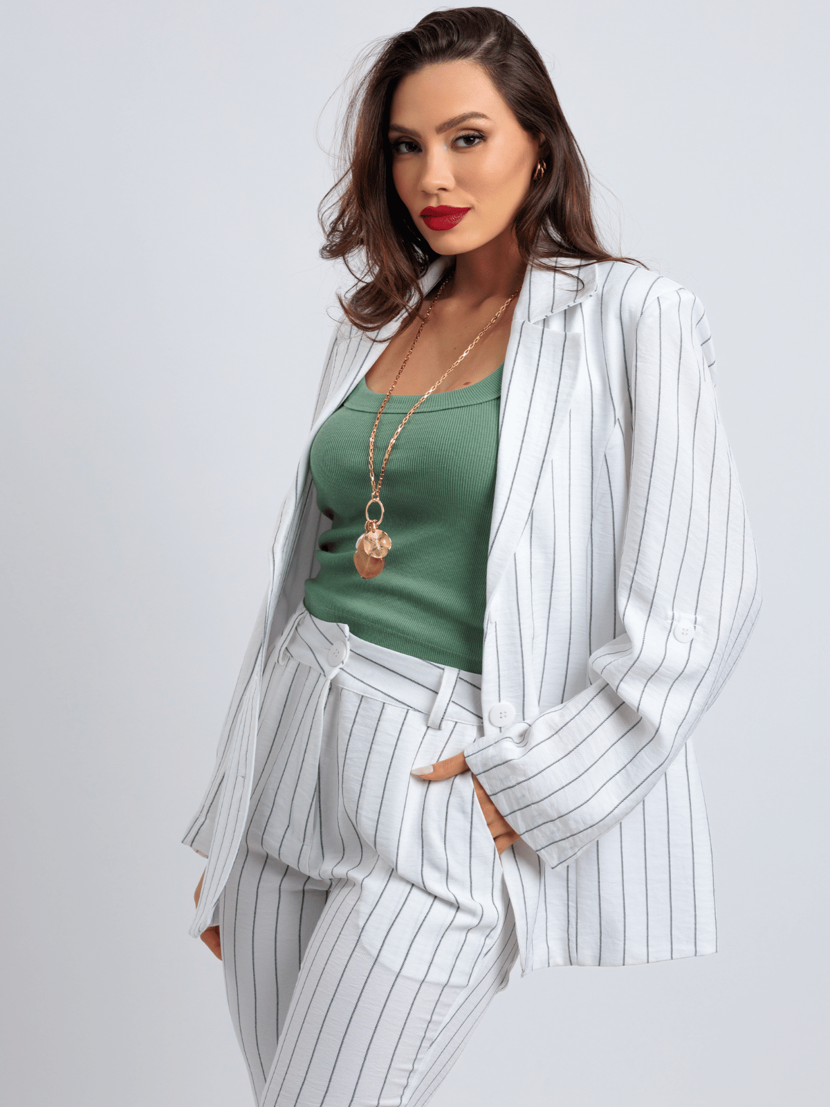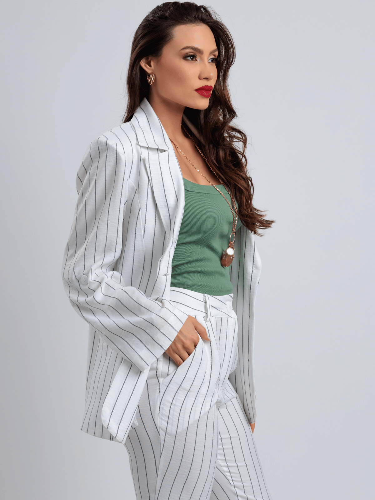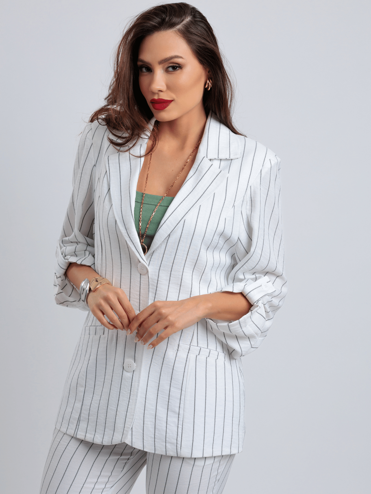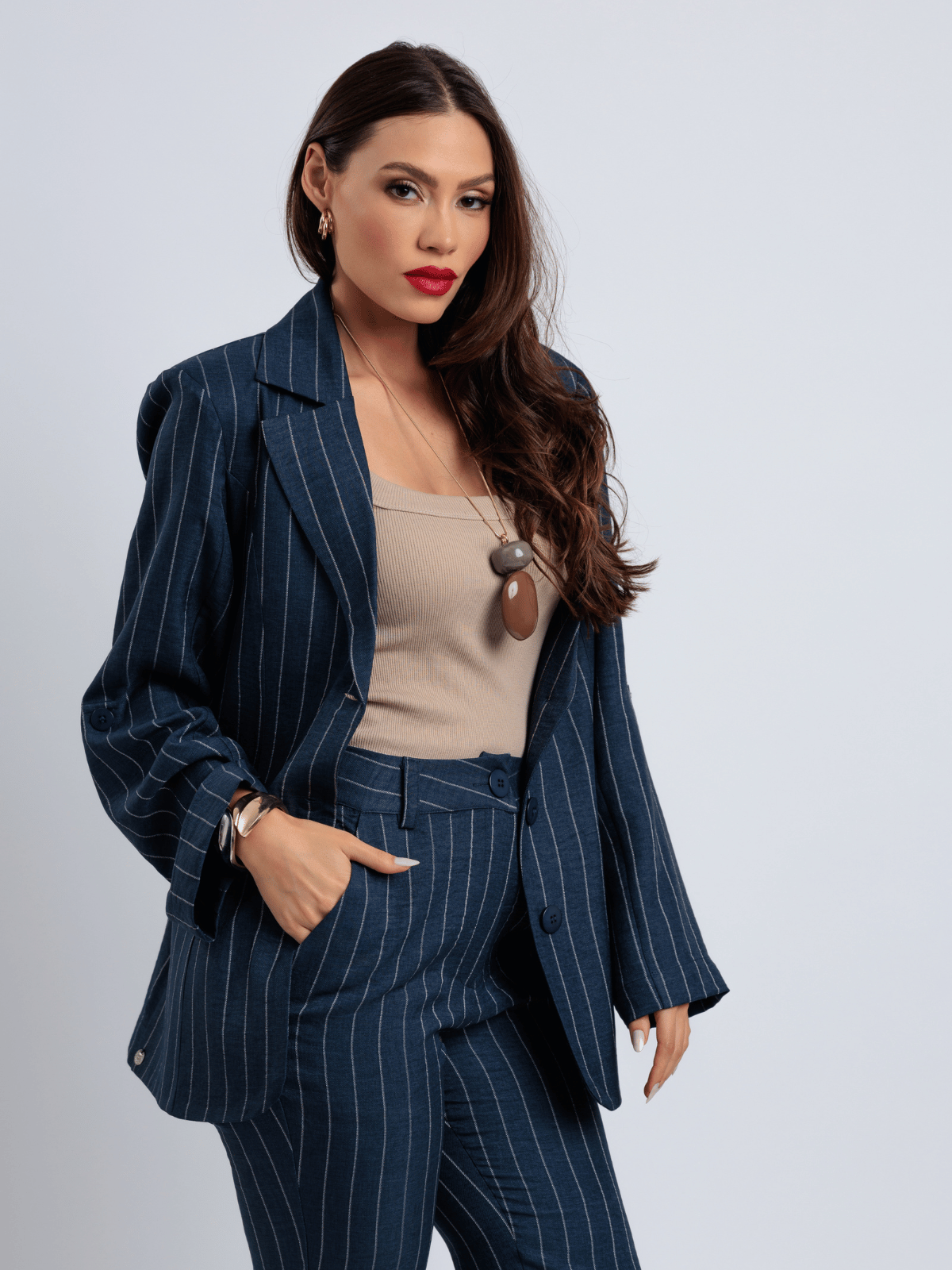 O Blazer Miriana é uma peça clássica e sofisticada, ideal para elevar qualquer produção com elegância e modernidade.