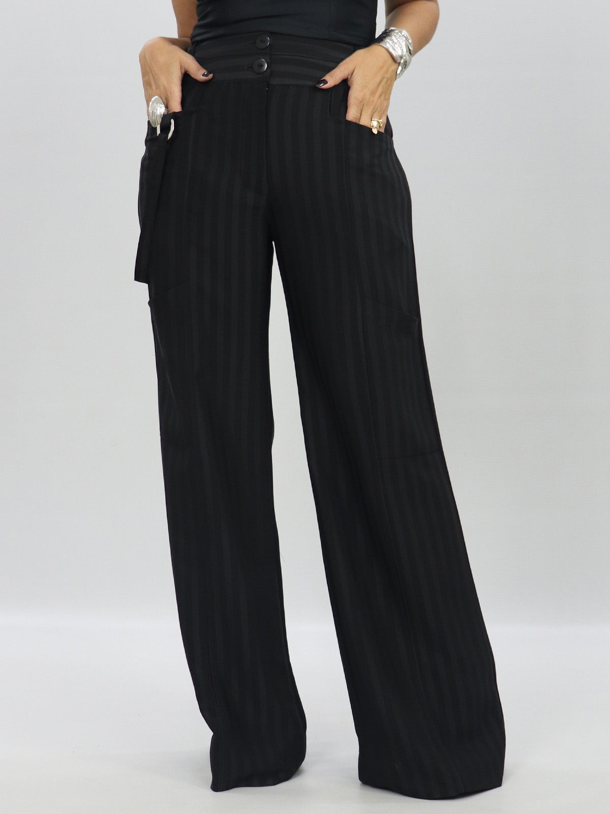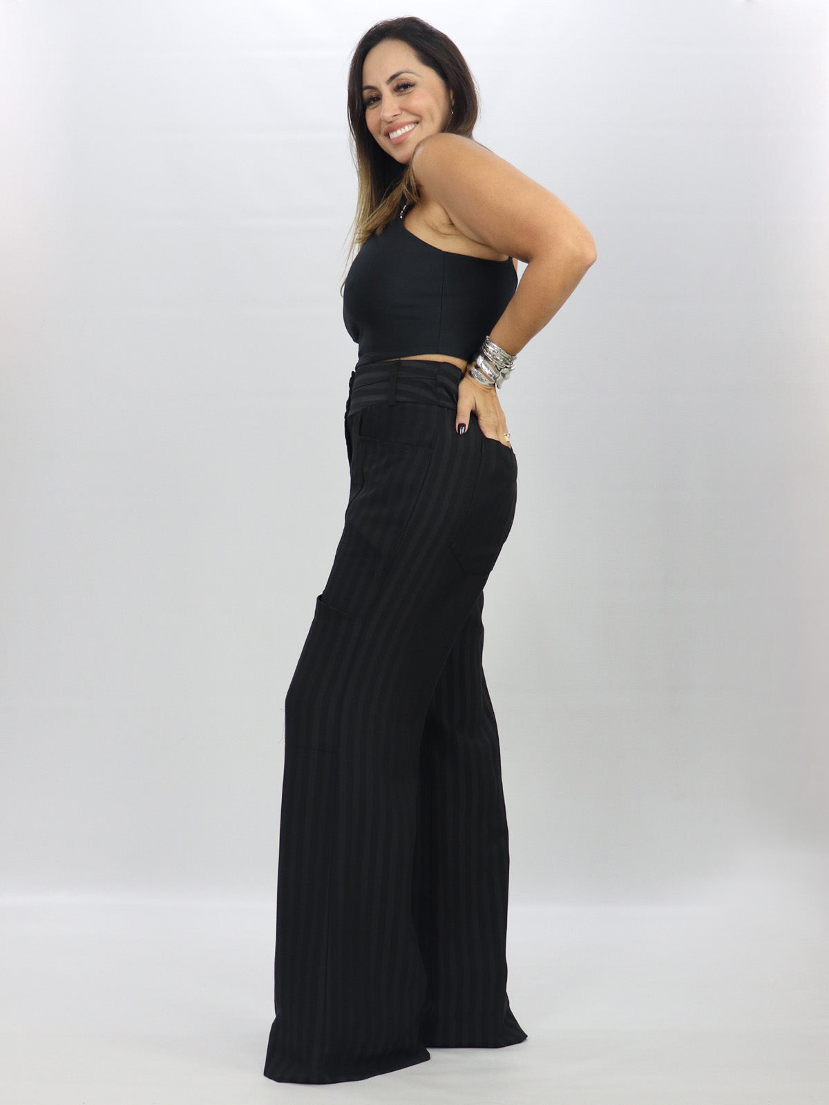 A Calça Katerine redefine a elegancia e a modernidade. Com uma modelagem solta e reta, possui cintura de altura média, fechamento frontal com zíper e botão, bolsos laterais e posteriores que ganham um toque único com o detalhe da meia-lua presa a uma tira de tecido, criando um jogo de texturas que eleva a peça. Perfeita para quem gosta de um estilo alfaiataria sem ficar tão séria no look.