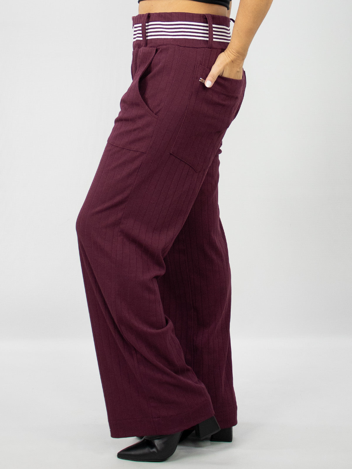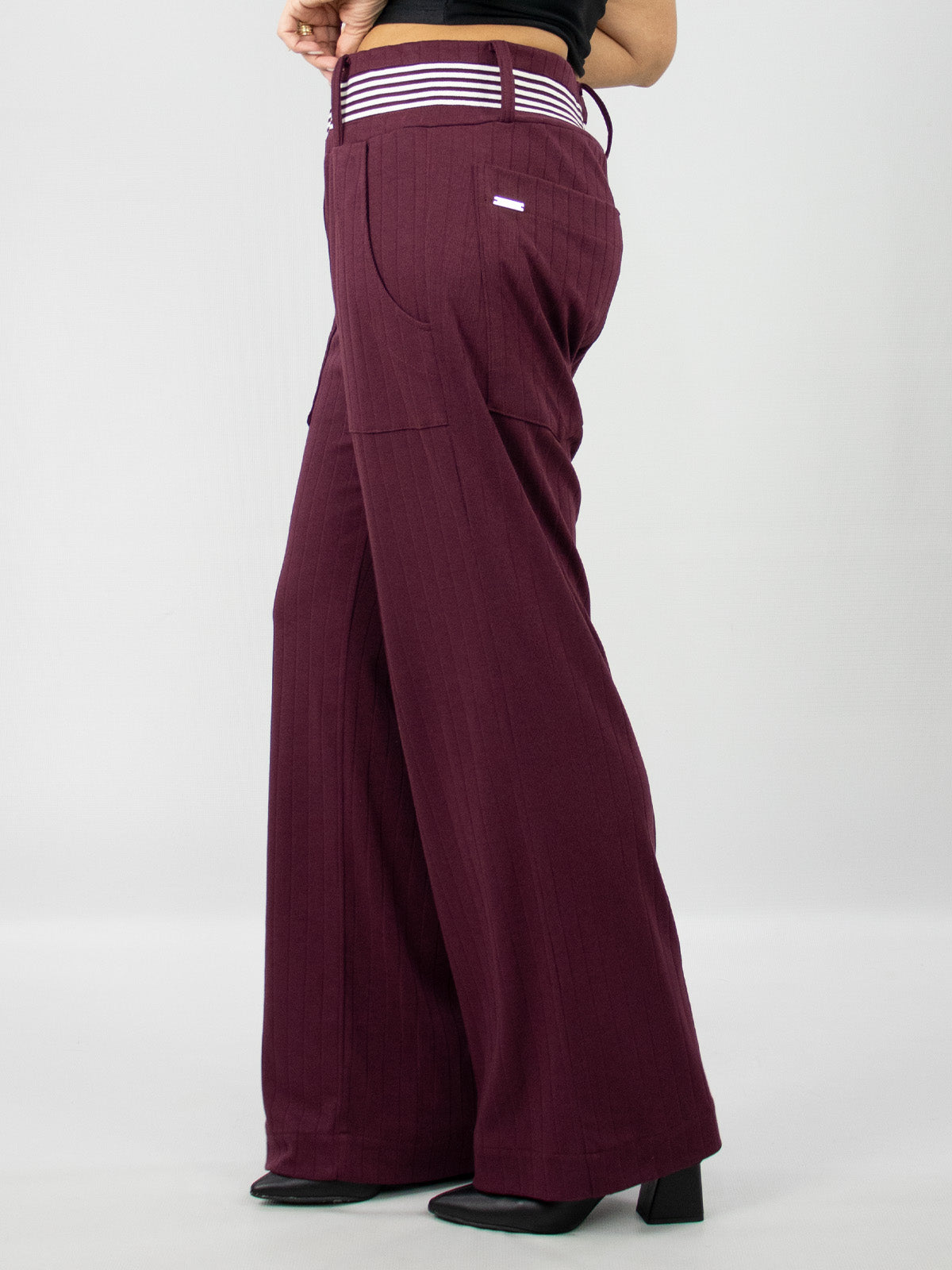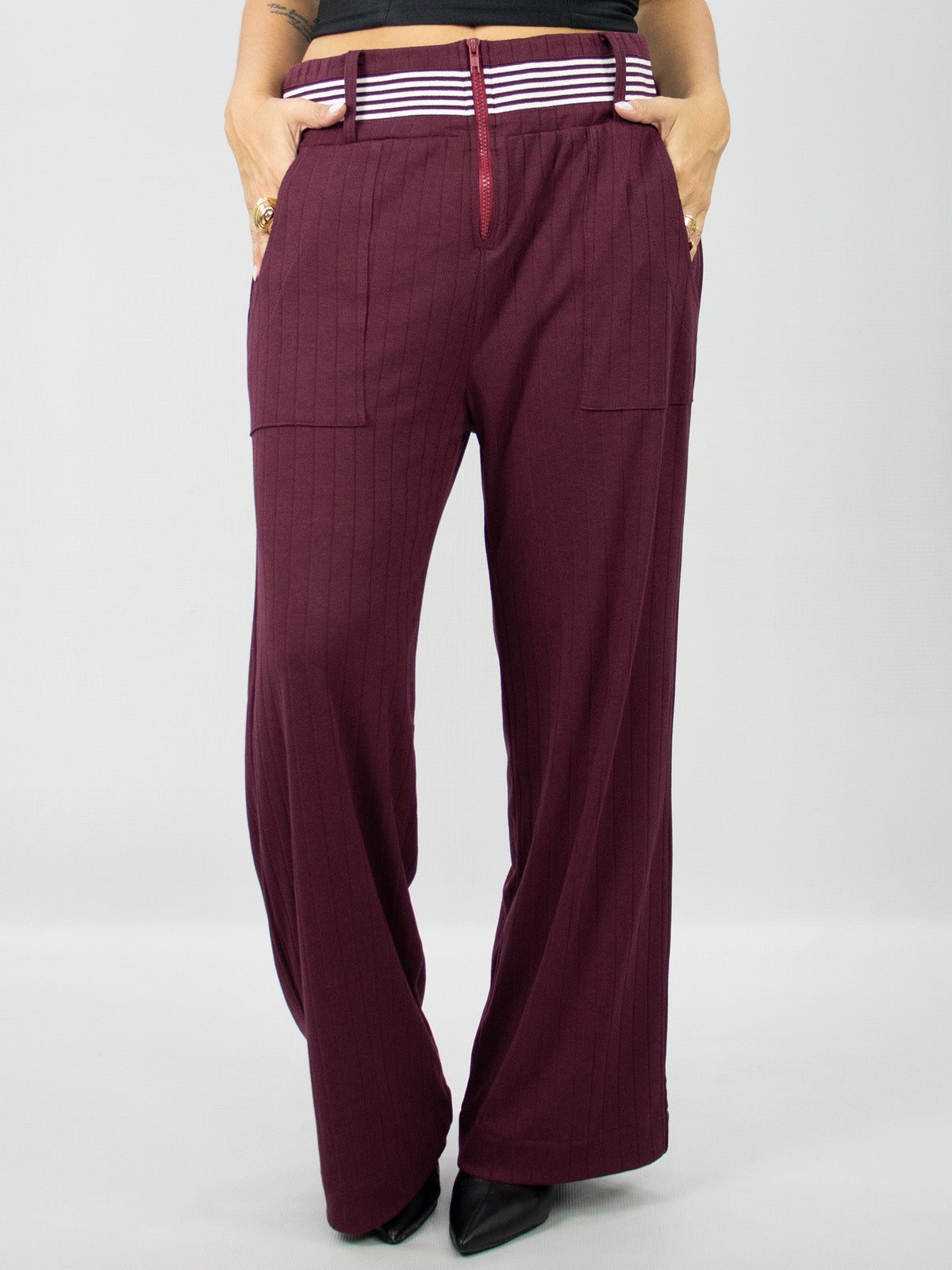 A Calça Loane possui um tecido fluído, que oferece uma modelagem com um caimento mais sofisticado, com cintura média, esta peça possui um detalhe no cós de listra, conta com passantes em sua circunferência, fechamento frontal por zíper, conta com bolsos laterais e posteriores. Uma ótima opção para compor looks casuais ou mais formais.