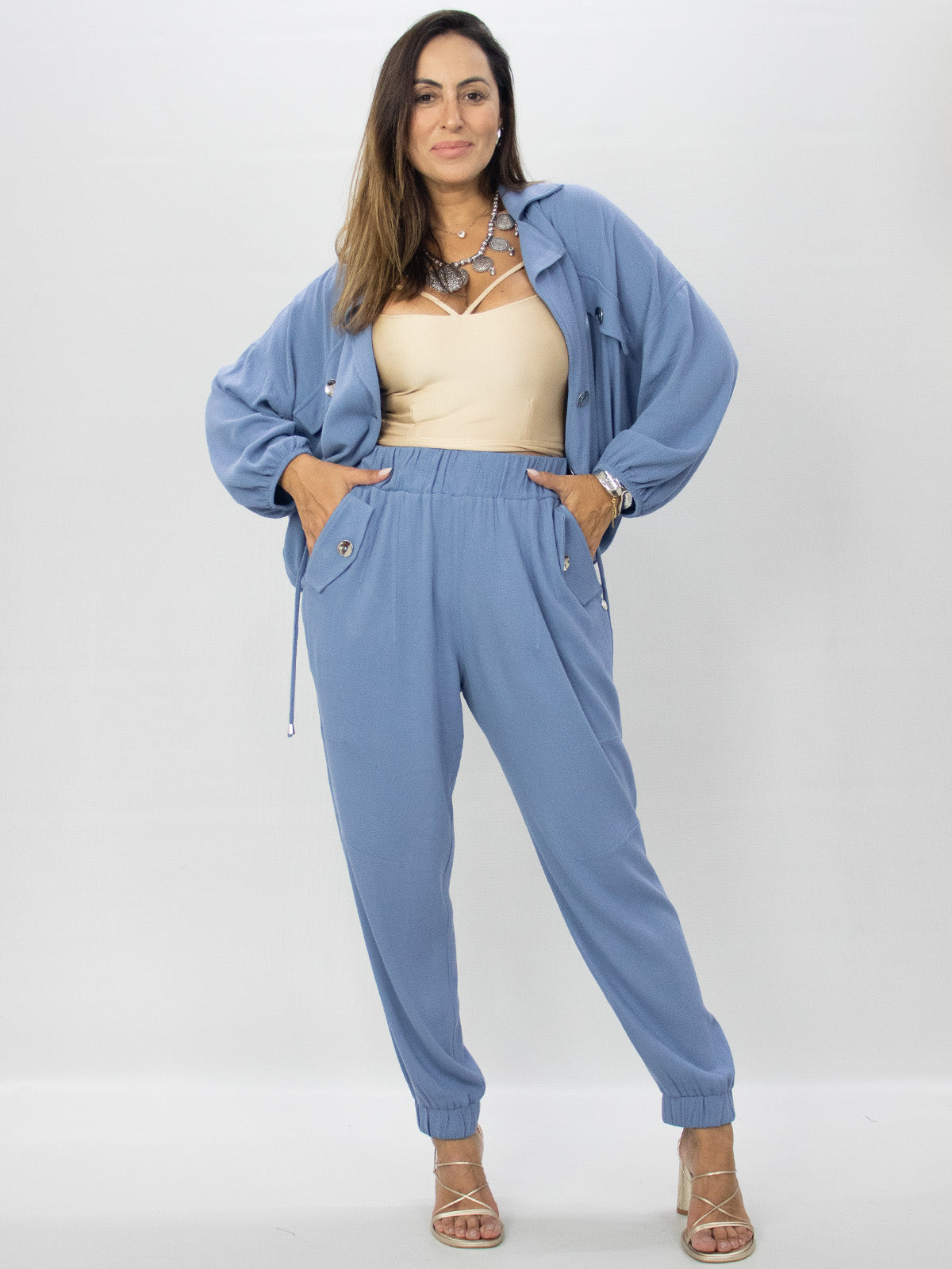 A Calça Liora foi confeccionada para quem busca conforto sem abrir mão do estilo. É uma peça com uma modelagem mais reta e fluída, seu toque é suave e macio, conta com uma cintura média combinando o cós largo com elástico, garantindo assim um ajuste mais confortável ao usa-la possui bolsos laterais e posteriores. Uma Calça fácil e prática para criar looks modernos.