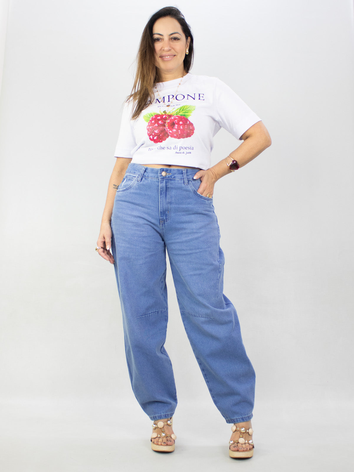 A Calça Jeans Feminina Andria combina conforto e estilo em um corte moderno. Possui cós médio com passantes, modelagem ampla que afunila levemente em direção à barra, e fechamento frontal por zíper e botão. Conta com bolsos frontais e posteriores funcionais, tornando-se prática e versátil. Confeccionada em jeans estruturado, é perfeita para compor looks casuais e contemporâneos, sendo uma peça curinga para diversas ocasiões.