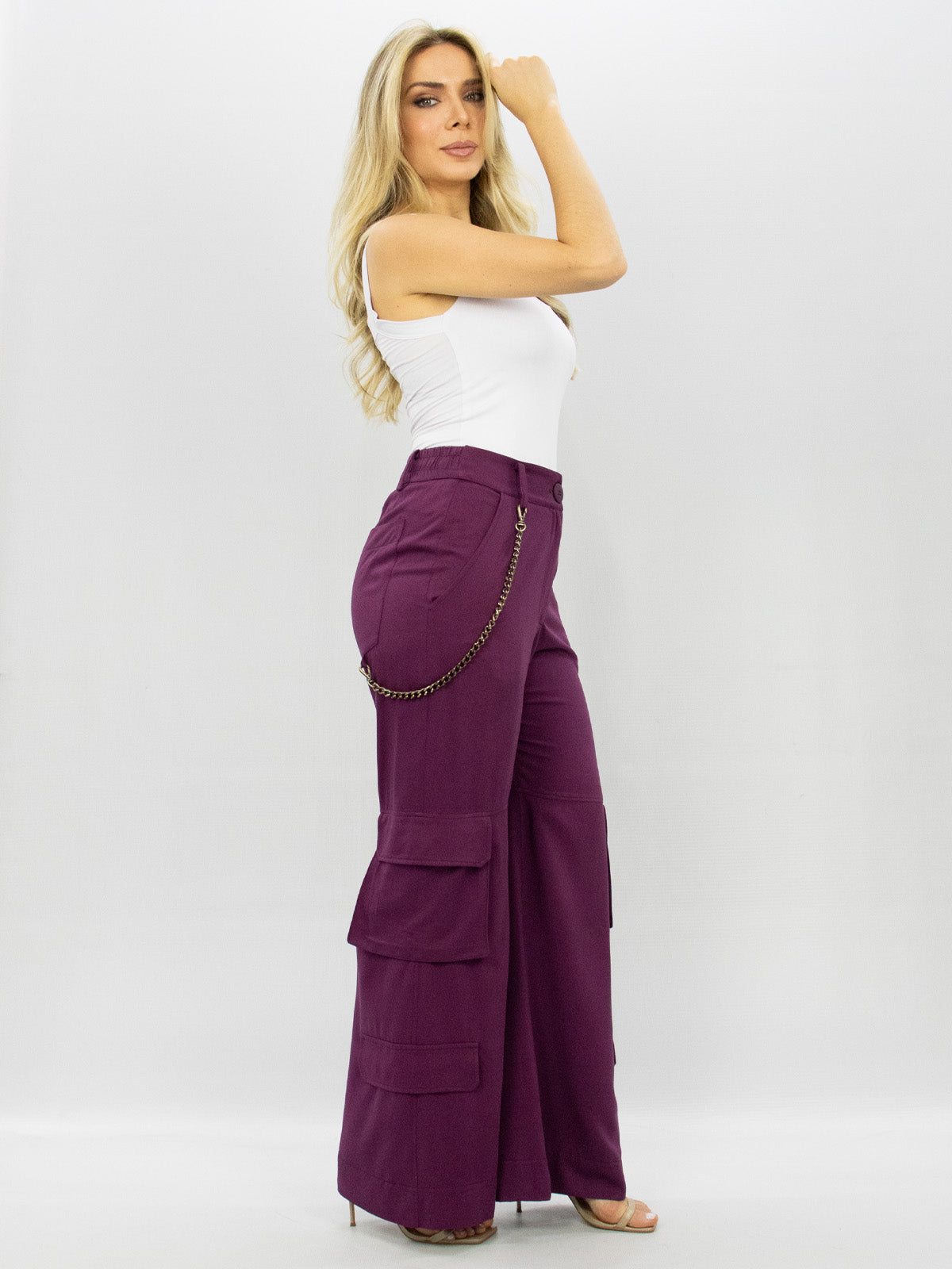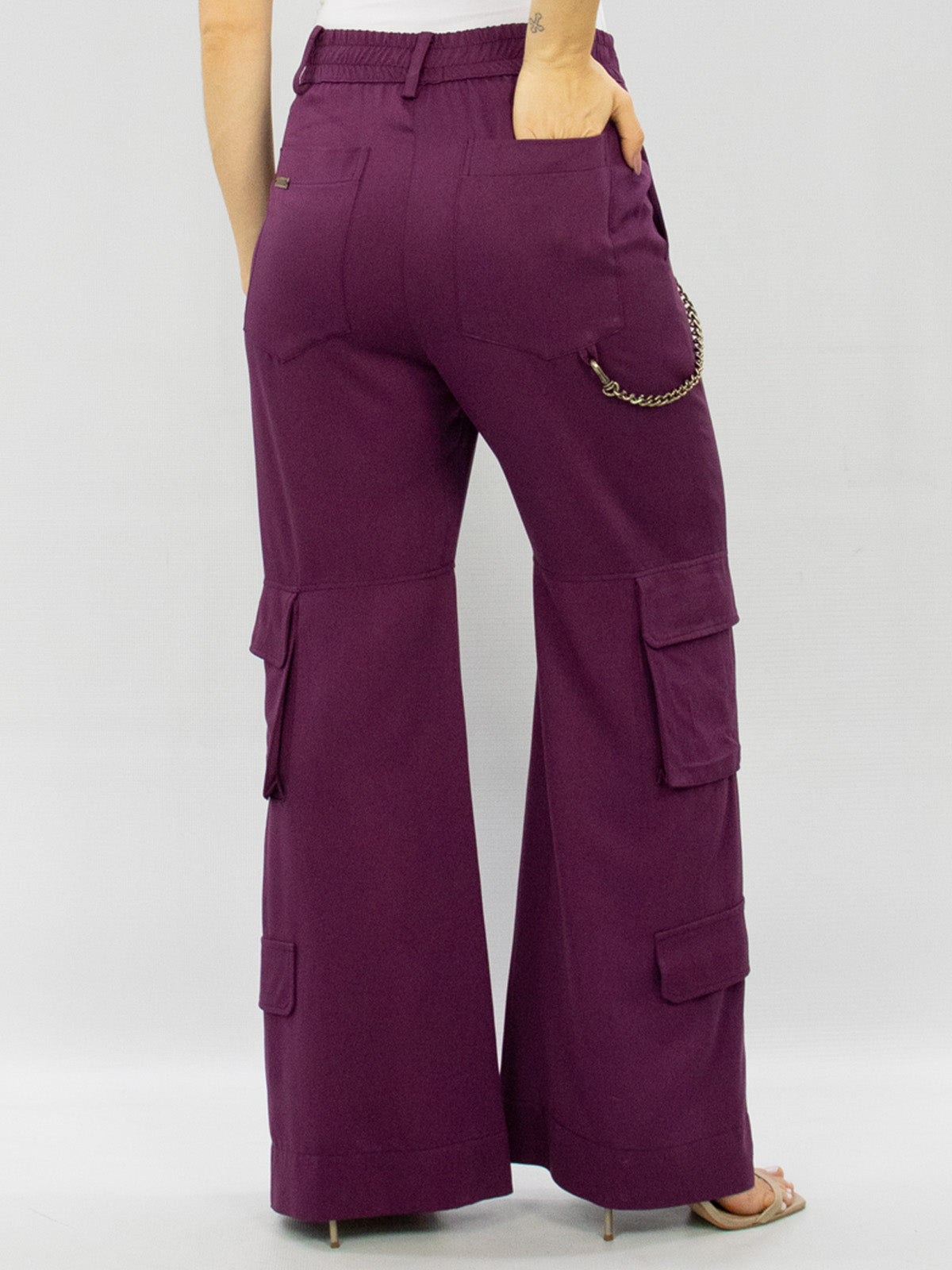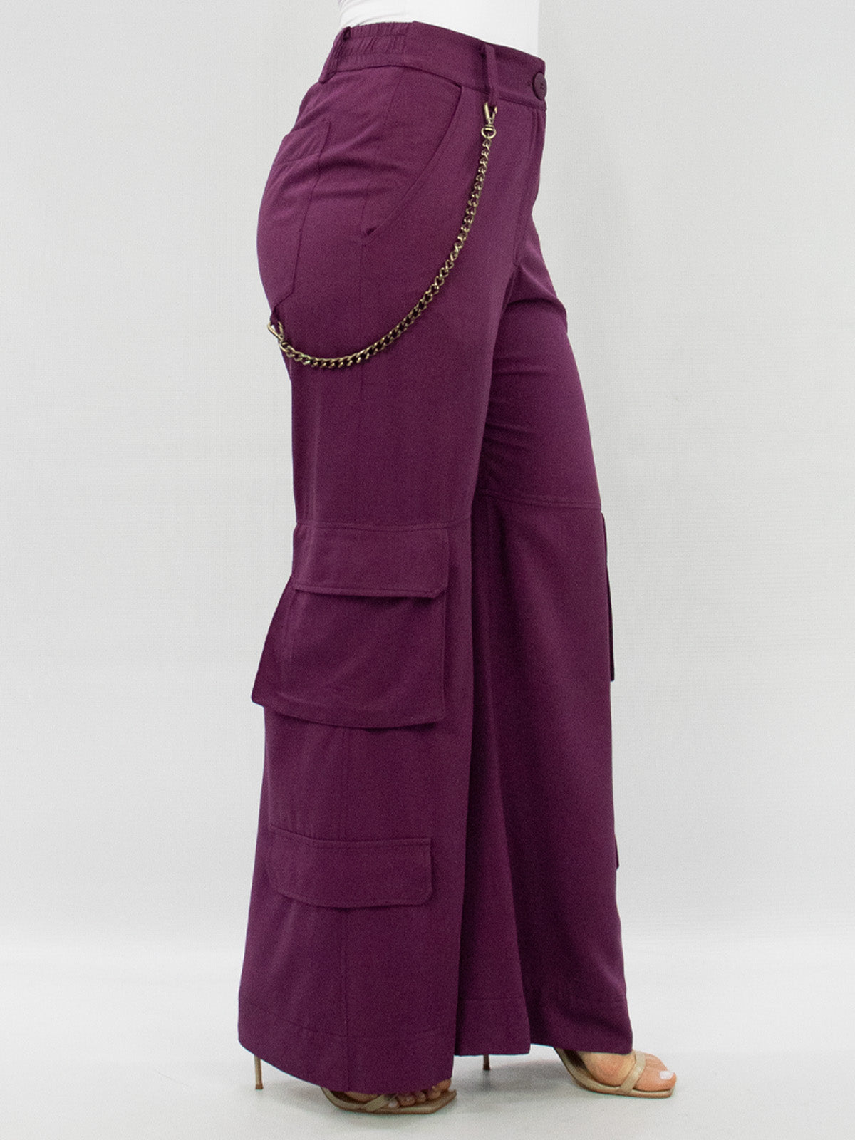 A Calça Zélia redefine o conceito de sofisticação. Ela possui uma modelagem com um caimento impecável e elegante, seus detalhes foram pensados com precisão: uma corrente delicadamente presa na lateral adiciona um toque audacioso, enquanto os bolsos laterais que ficam no quadril e nas pernas e os bolsos traseiros oferecem funcionalidade sem comprometer a estética, o cós traseiro com elástico proporciona um ajuste confortável adaptando-se ao corpo. Essa calça é perfeito para quem busca uma combinação entre estilo e modernidade.