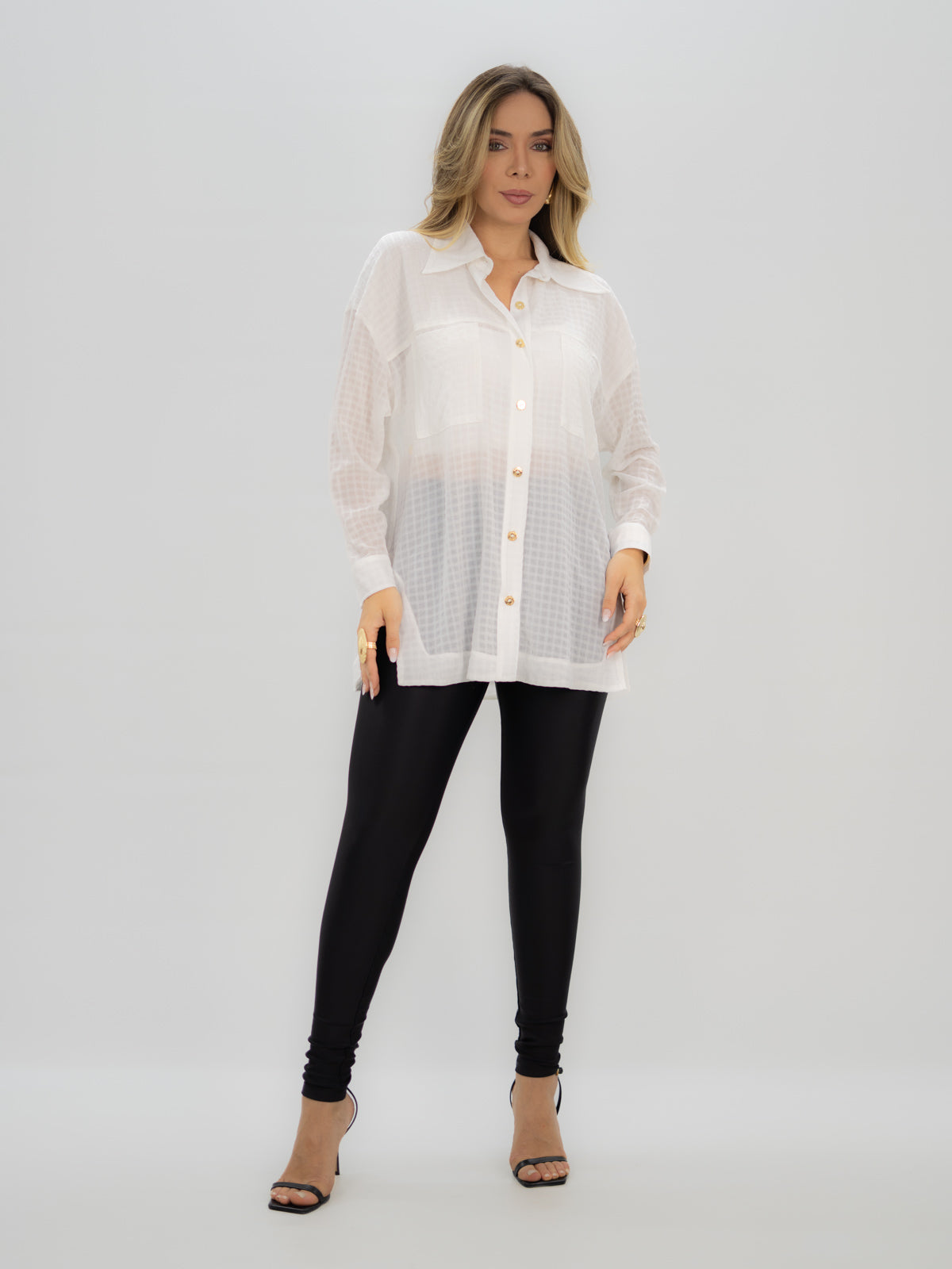 A Camisa feminina Corinne transforma totalmente o seu look. Sua modelagem tem o comprimento tradicional, conta com um delicado fechamento por abotoamento, possui bolsos frontais que acrescentam modernidade trazendo um ar descontraído à camisa, punhos com botão permitindo um ajuste a manga conforme o seu estilo. É uma peça que permite que você a use de diversas maneiras e ocasiões.