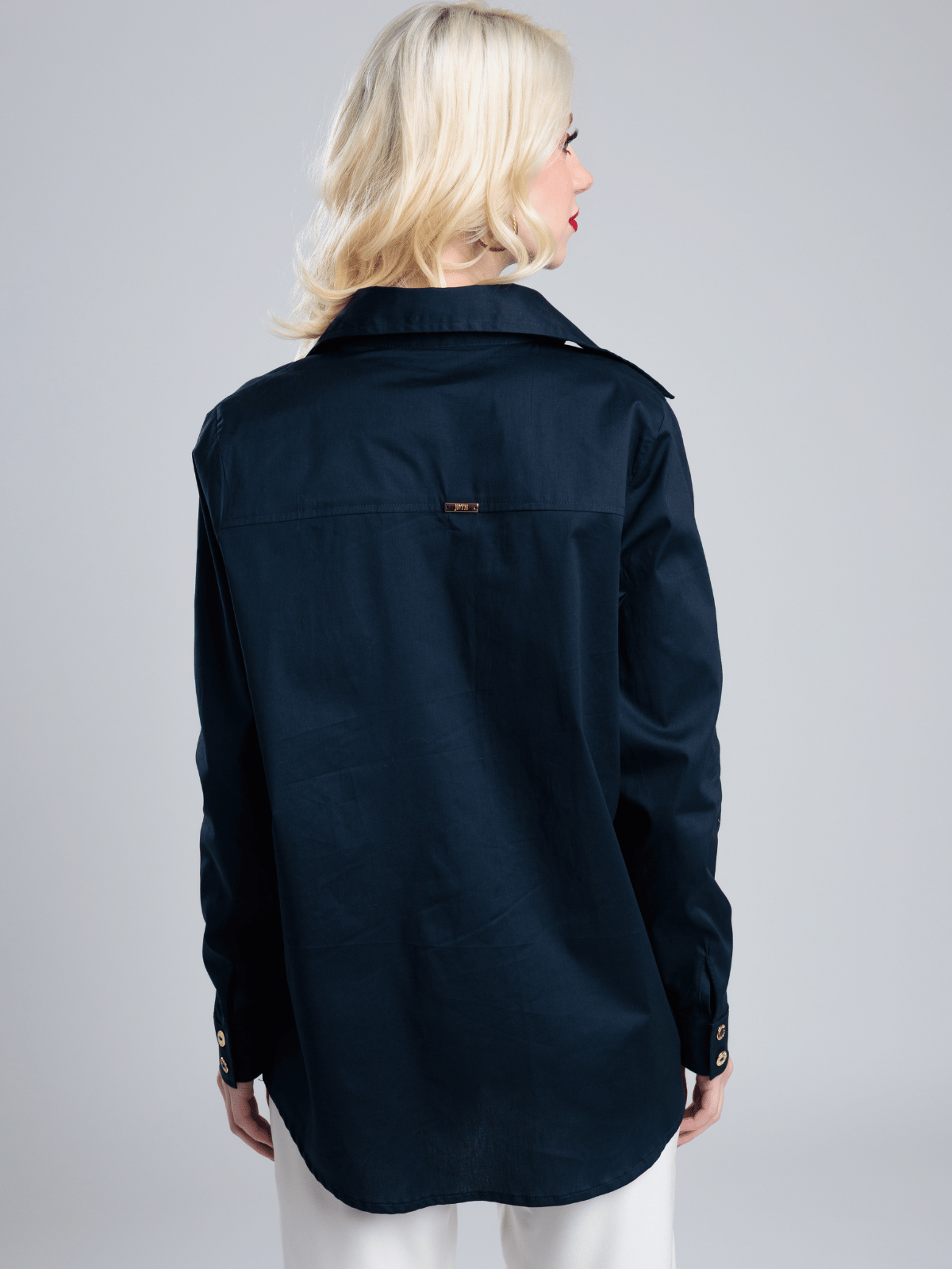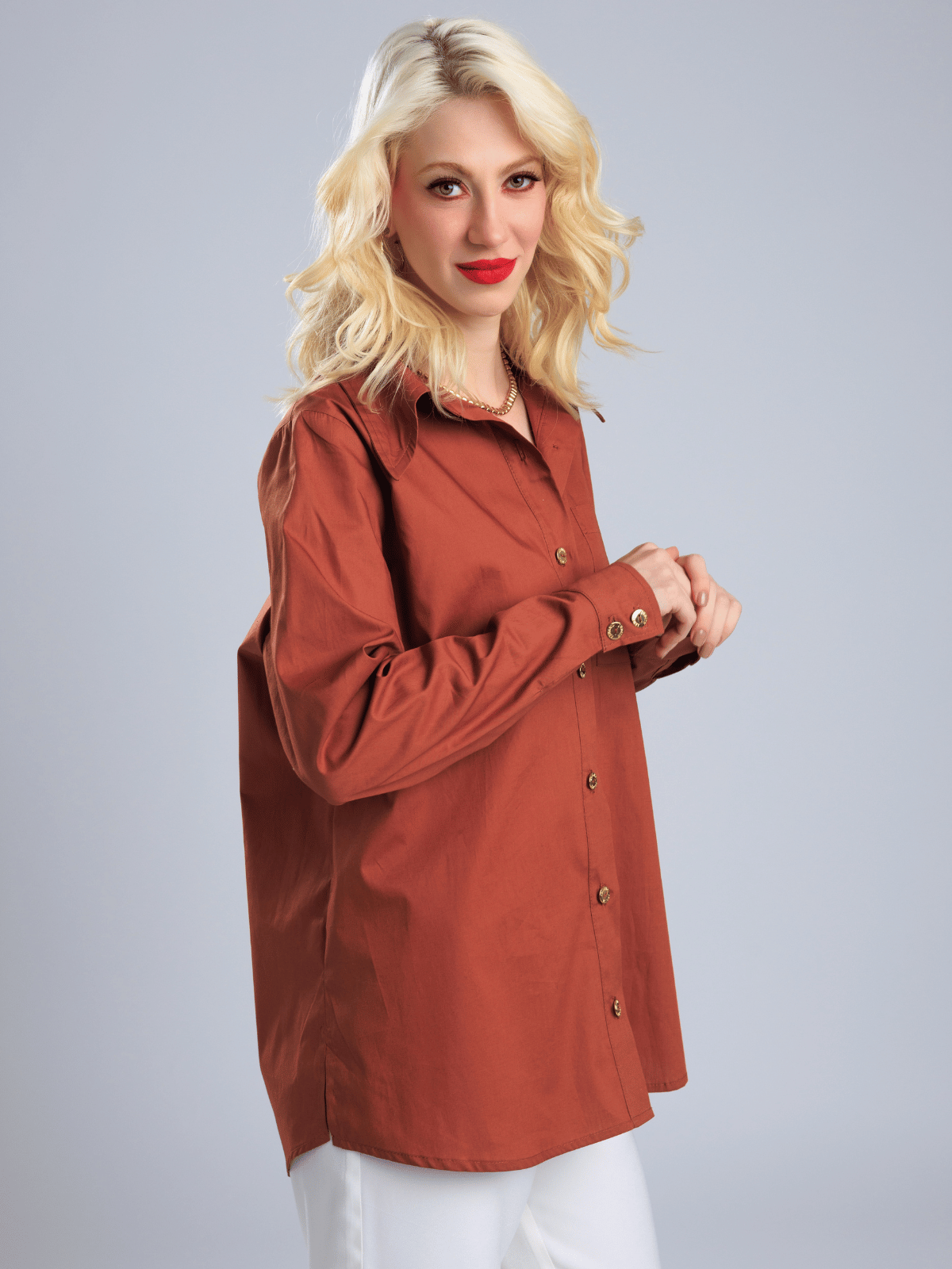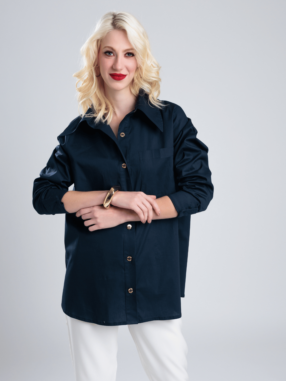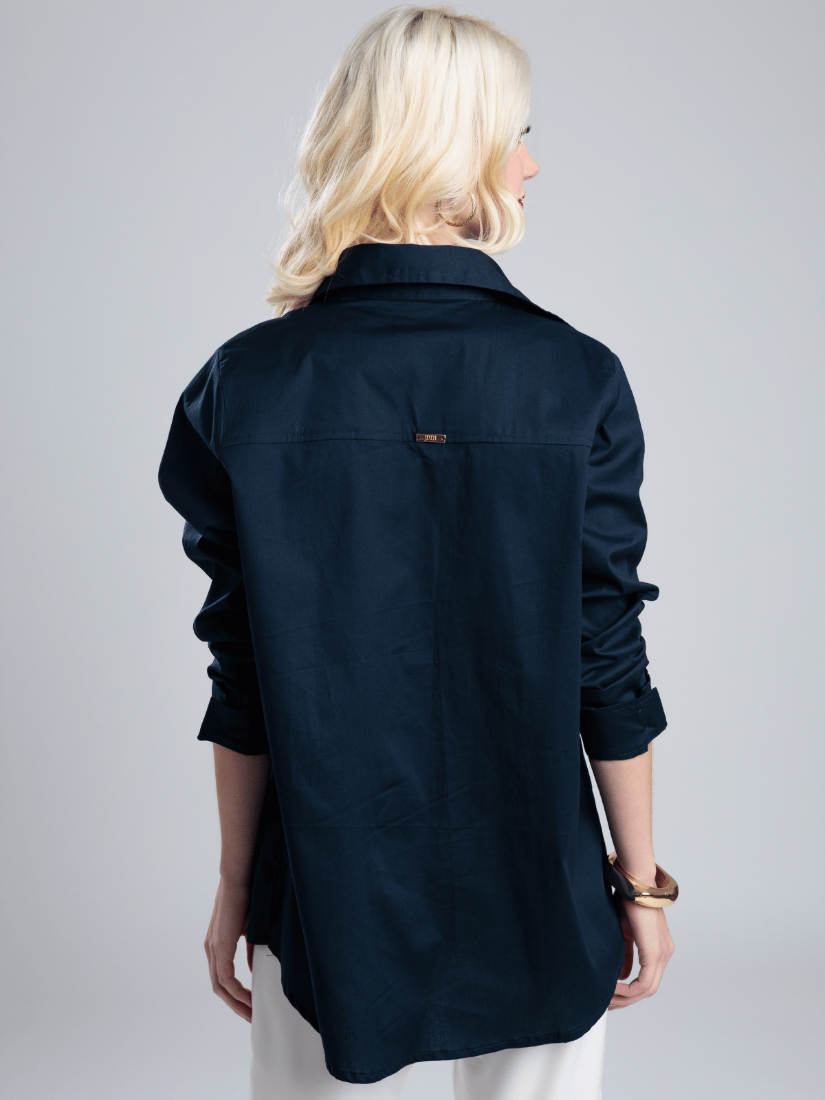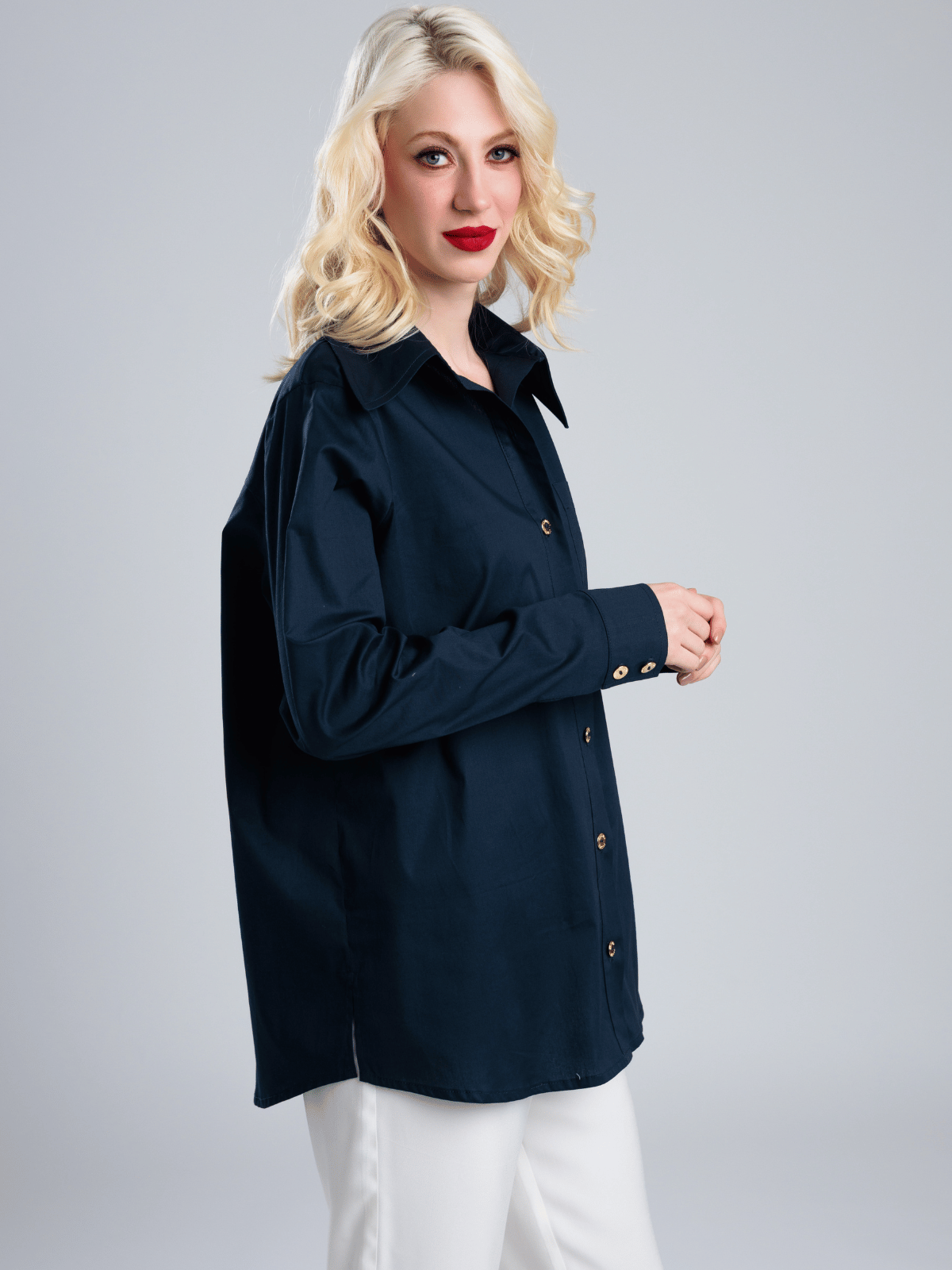 Com modelagem solta e mangas longas, apresenta gola tradicional, vista frontal com botões e punhos abotoados, além de pala nas costas e comprimento tradicional. O design clássico permite combinações que vão do casual refinado ao visual mais formal, tornando-a um verdadeiro curinga no guarda-roupa feminino.