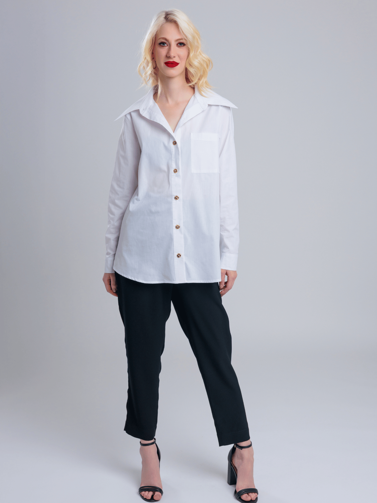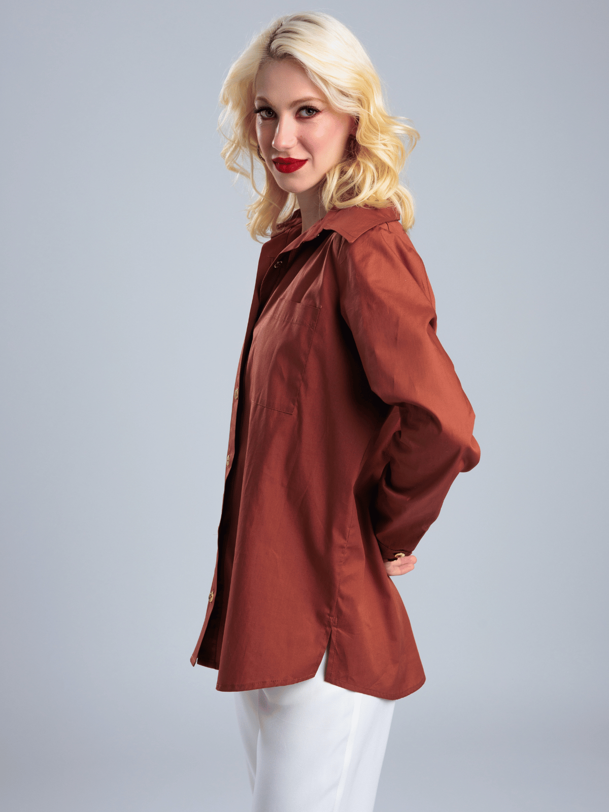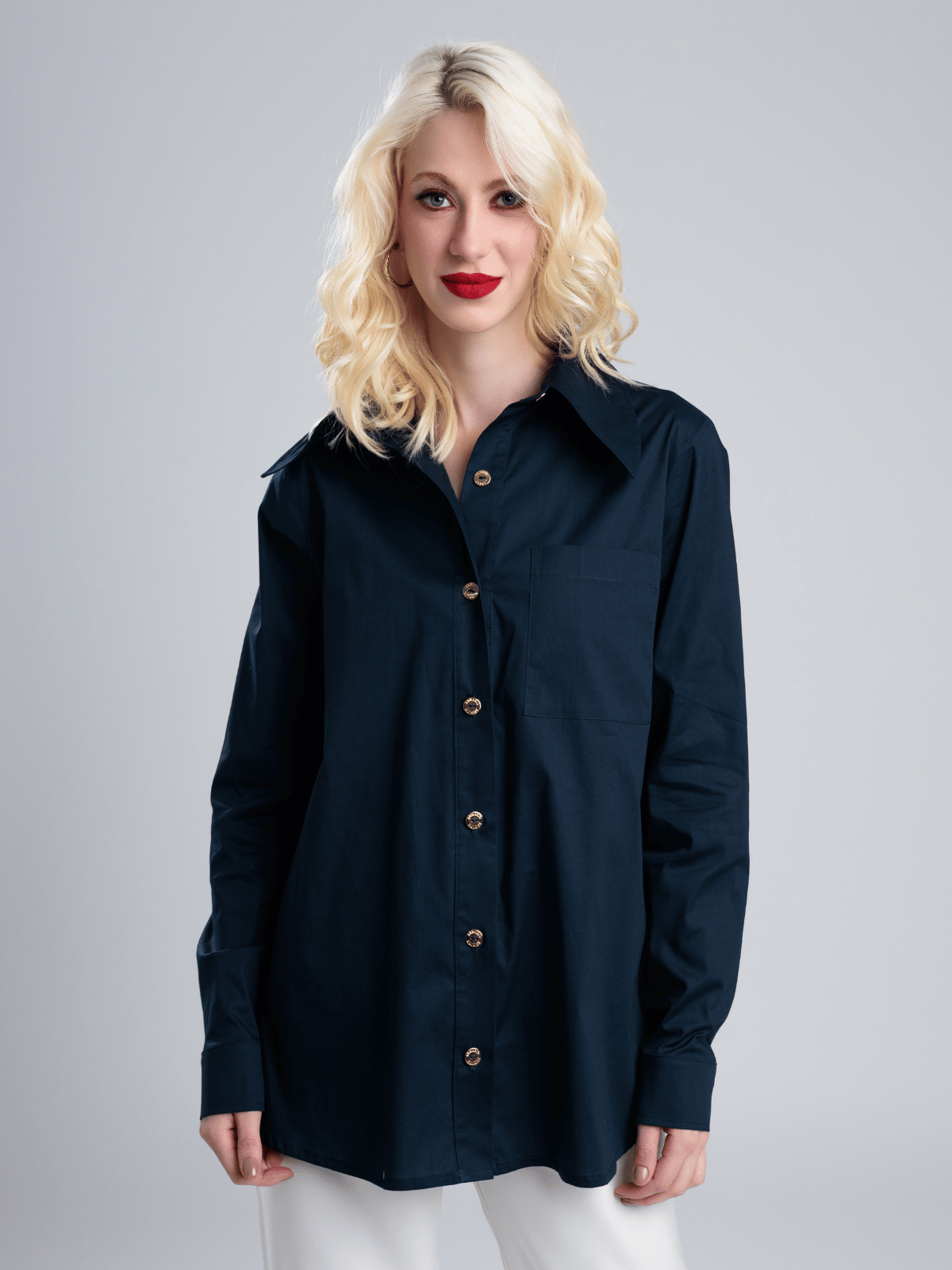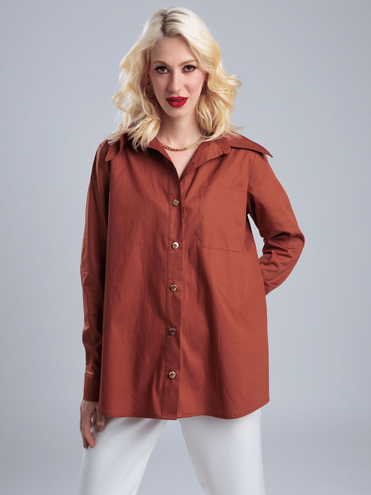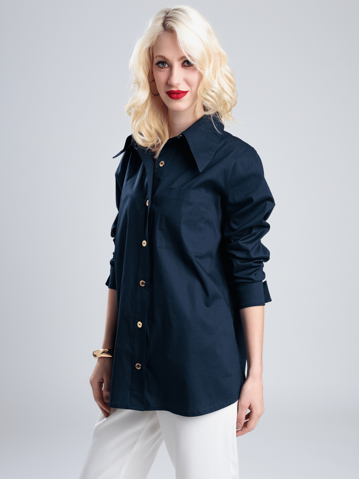 Com modelagem solta e mangas longas, apresenta gola tradicional, vista frontal com botões e punhos abotoados, além de pala nas costas e comprimento tradicional. O design clássico permite combinações que vão do casual refinado ao visual mais formal, tornando-a um verdadeiro curinga no guarda-roupa feminino.