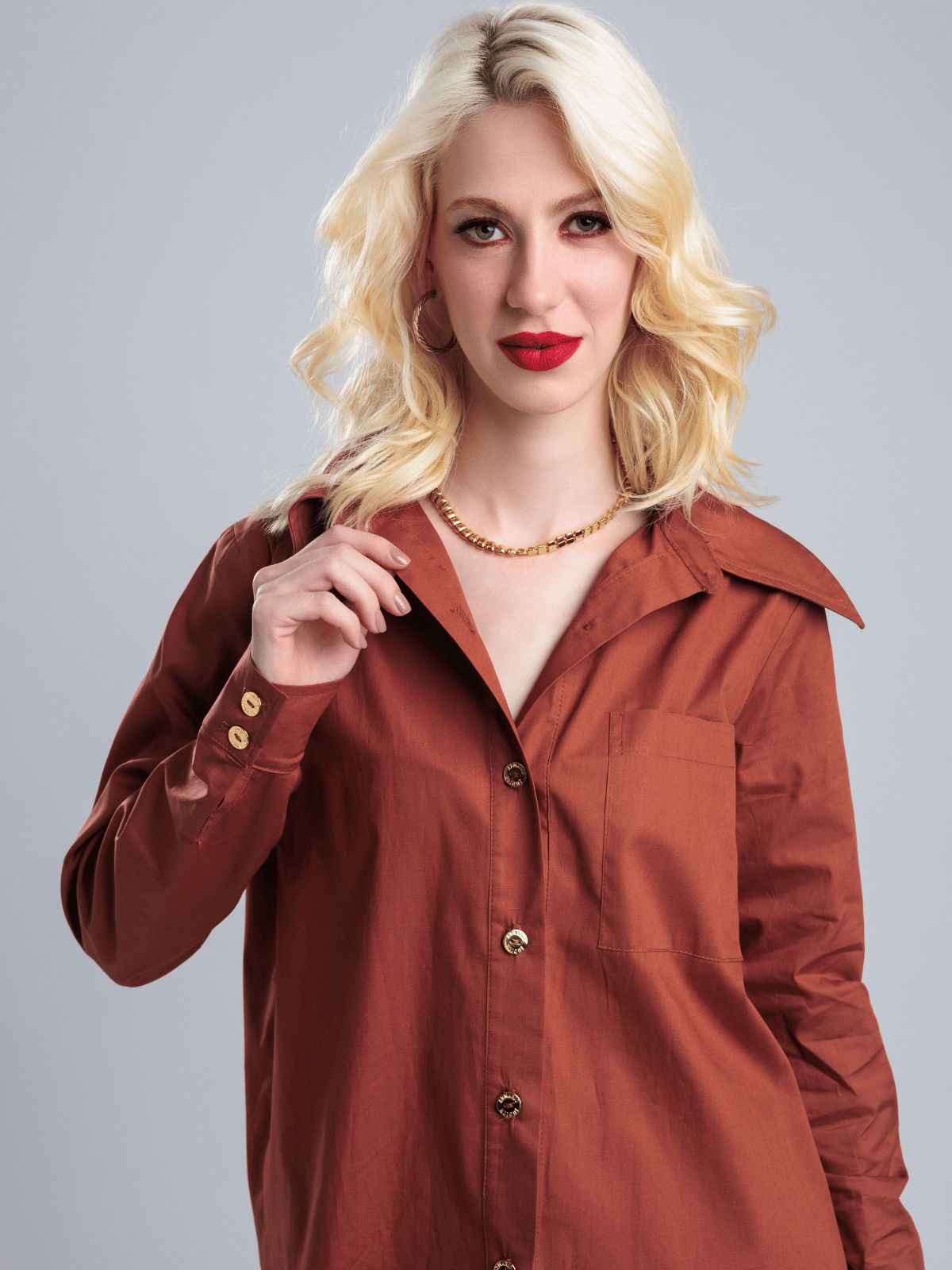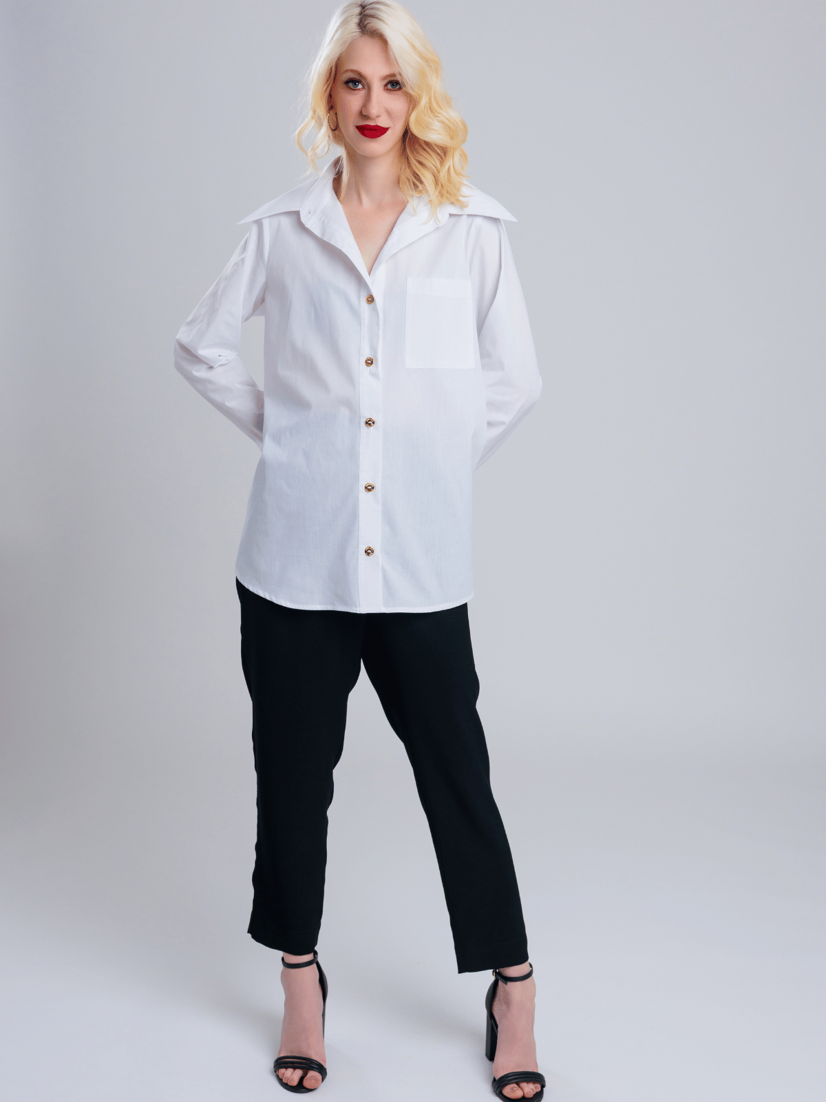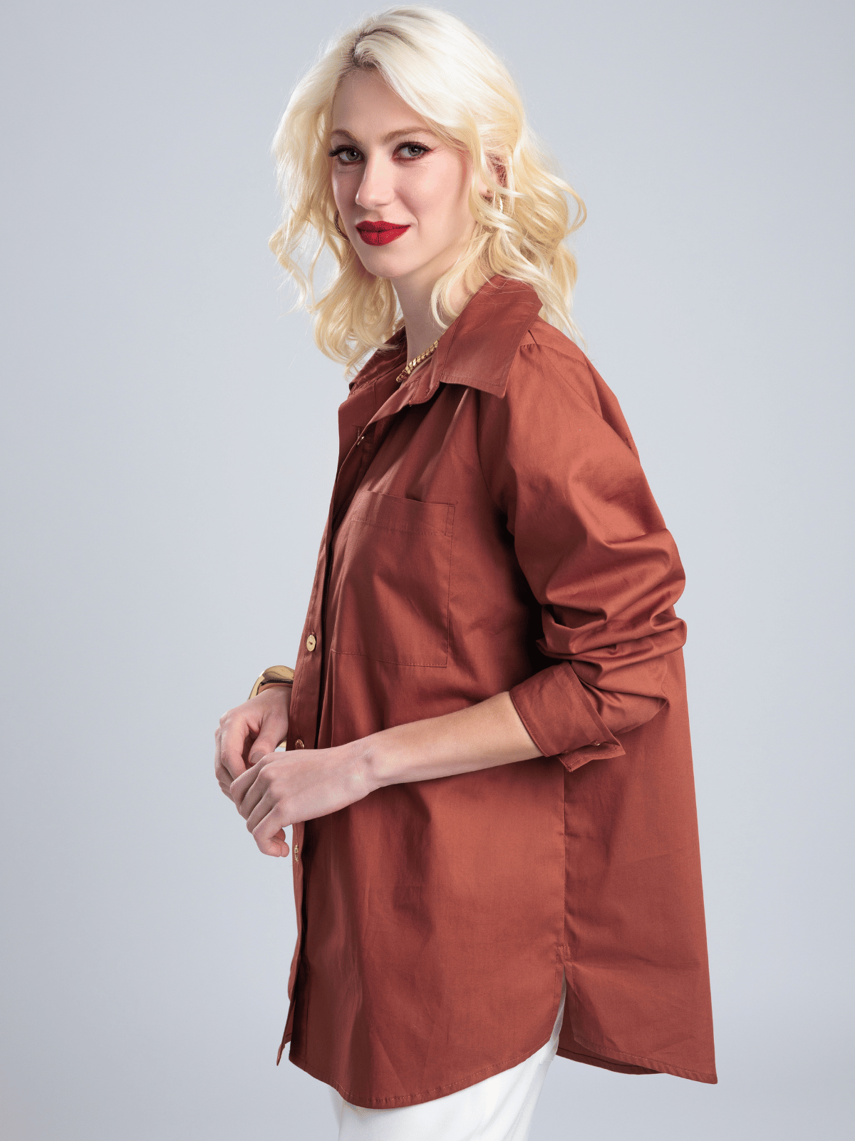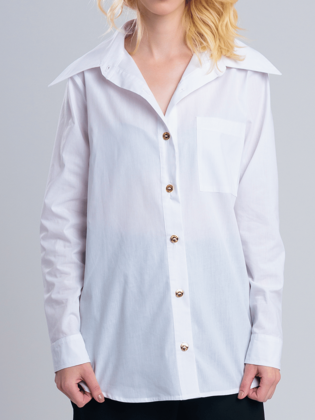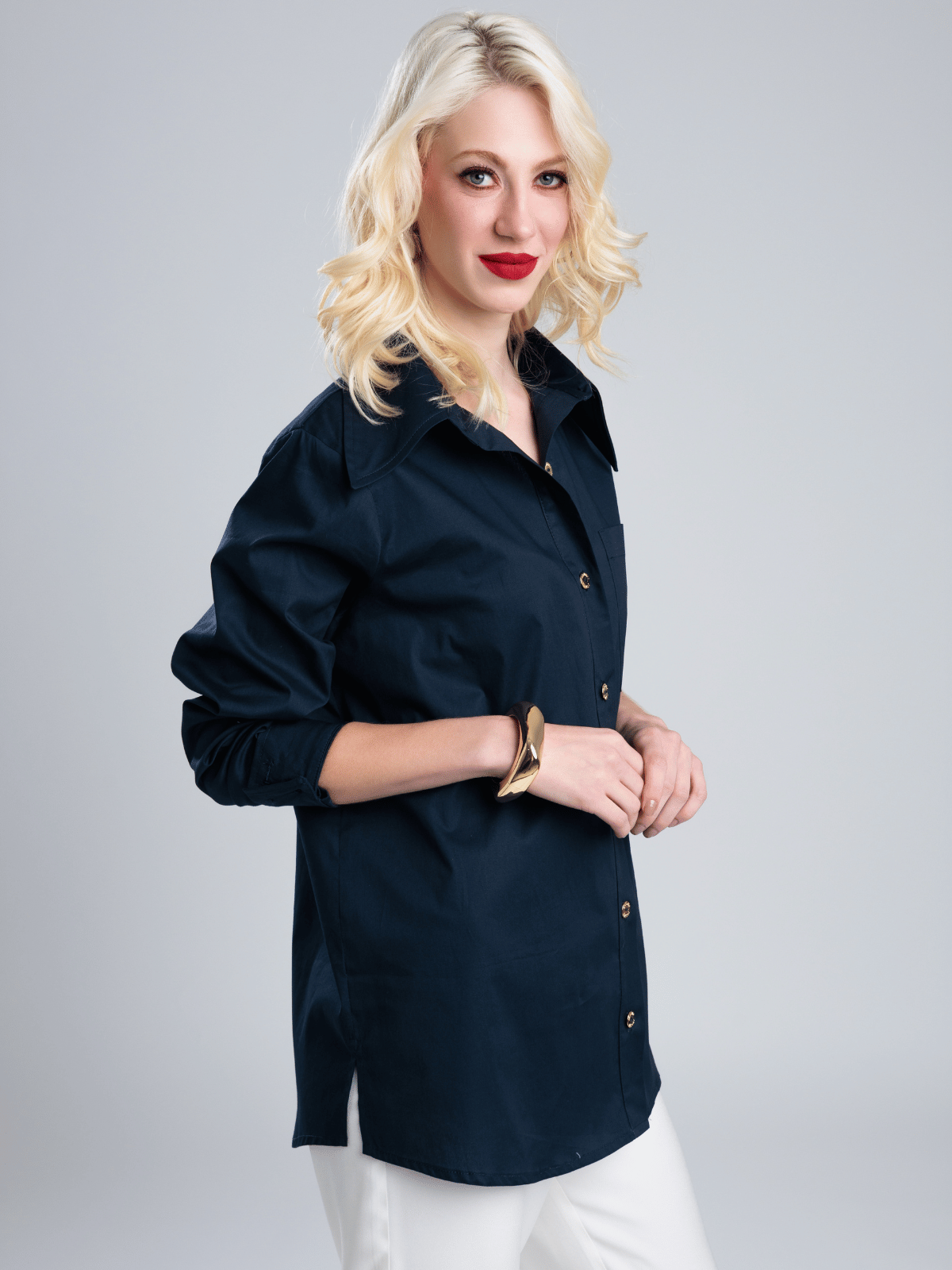 Com modelagem solta e mangas longas, apresenta gola tradicional, vista frontal com botões e punhos abotoados, além de pala nas costas e comprimento tradicional. O design clássico permite combinações que vão do casual refinado ao visual mais formal, tornando-a um verdadeiro curinga no guarda-roupa feminino.