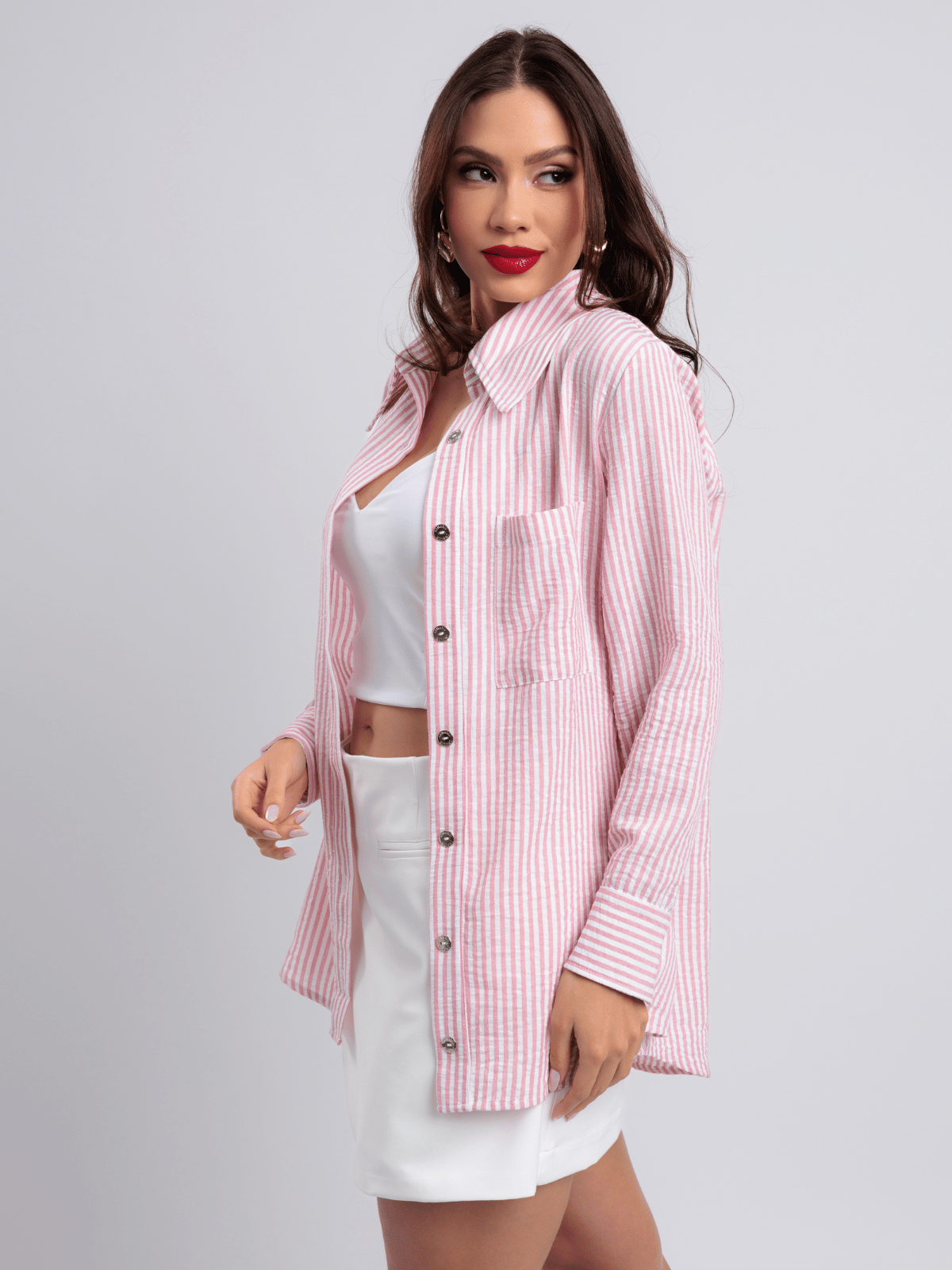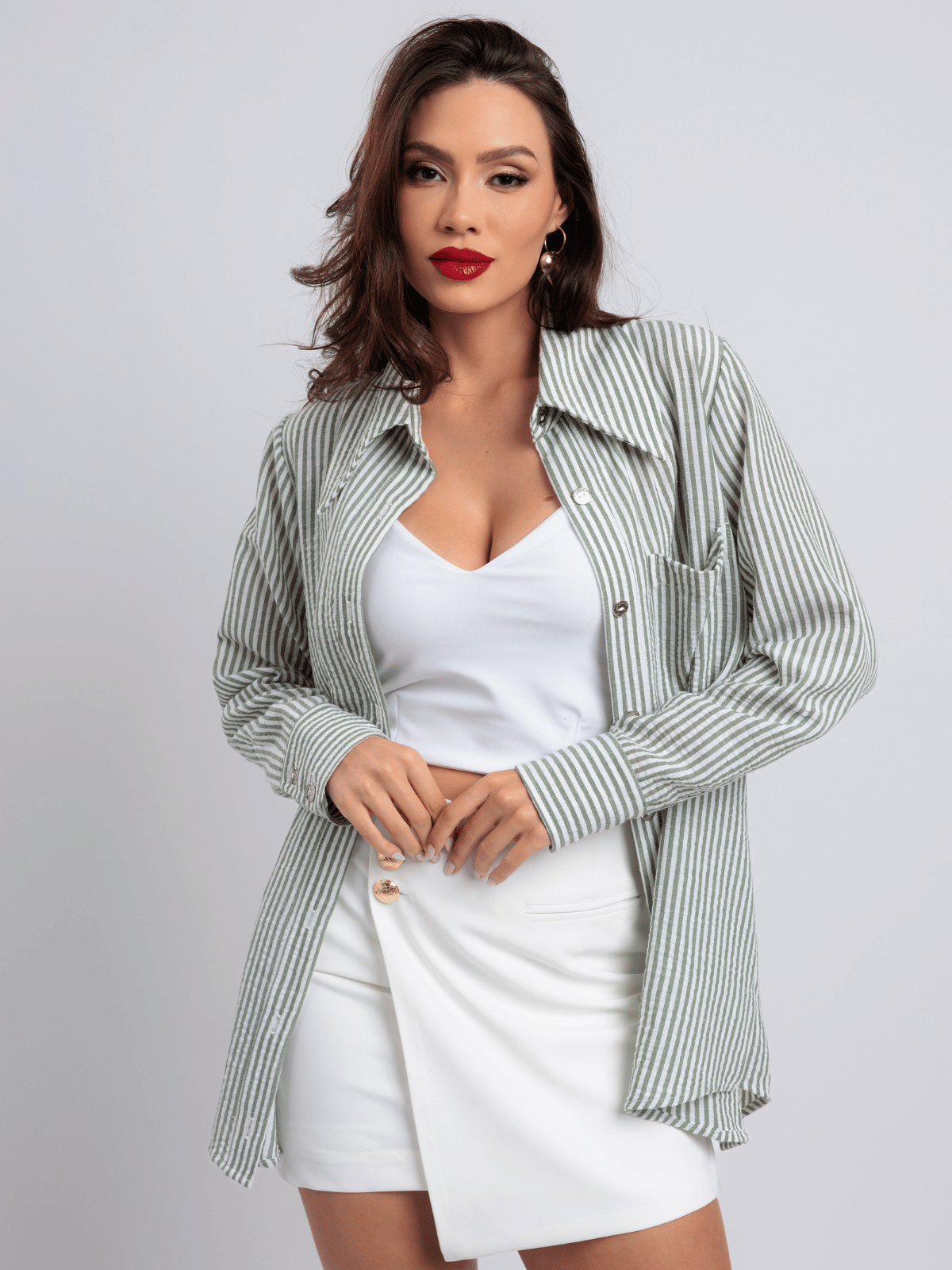 Use aberta sobre regatas ou croppeds para um look moderno e casual.