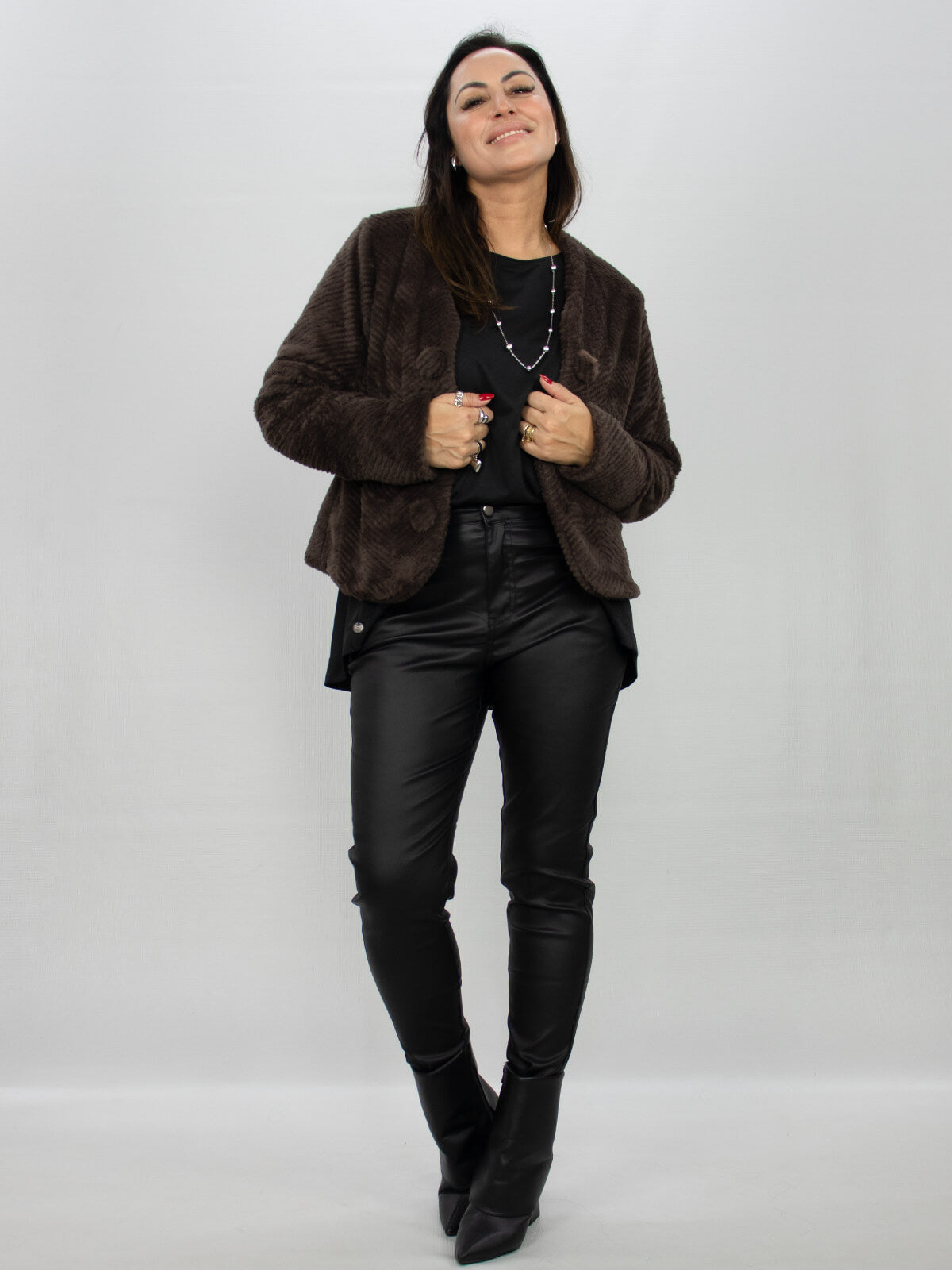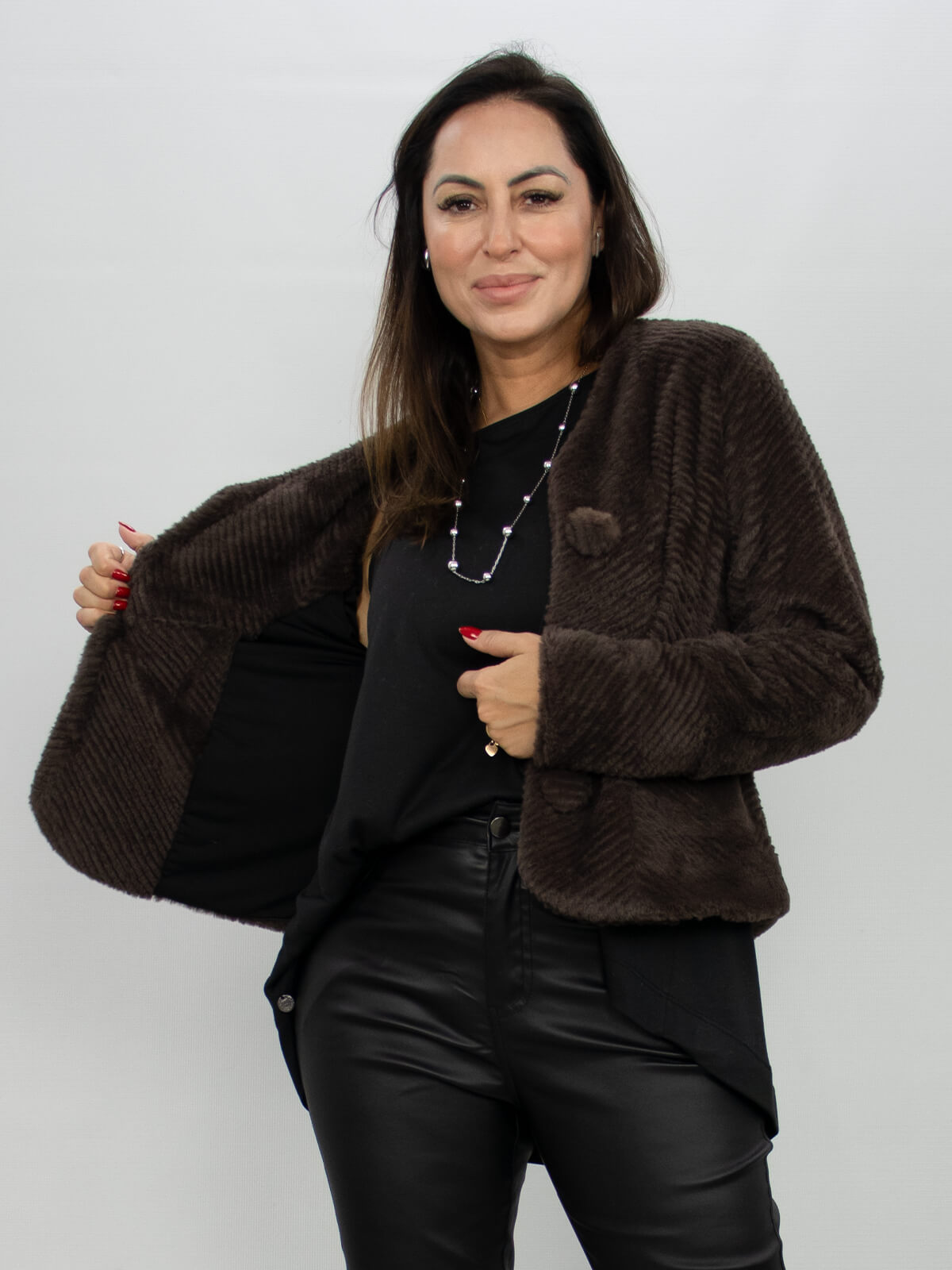 O nosso Casaco Lily possui um toque macio e caimento extremamente confortável. Sua modelagem possui um comprimento encurtado, deixando a peça moderna, seu forro tem elastano, com mangas longas, fechamento por botão forrado do mesmo tecido. É a escolha perfeita para te acompanhar em dias frios.
