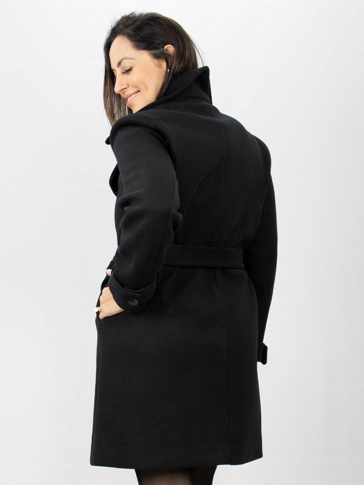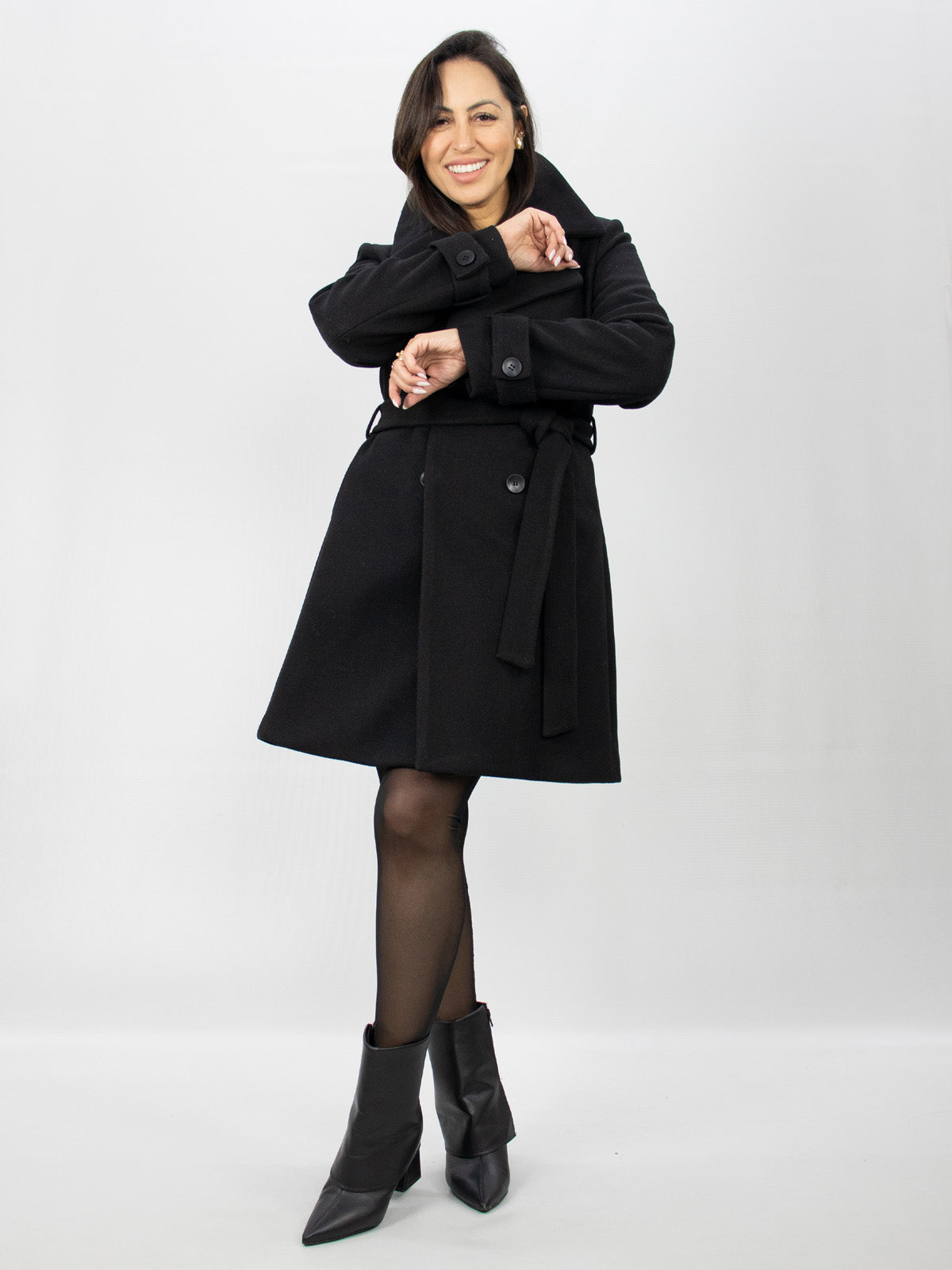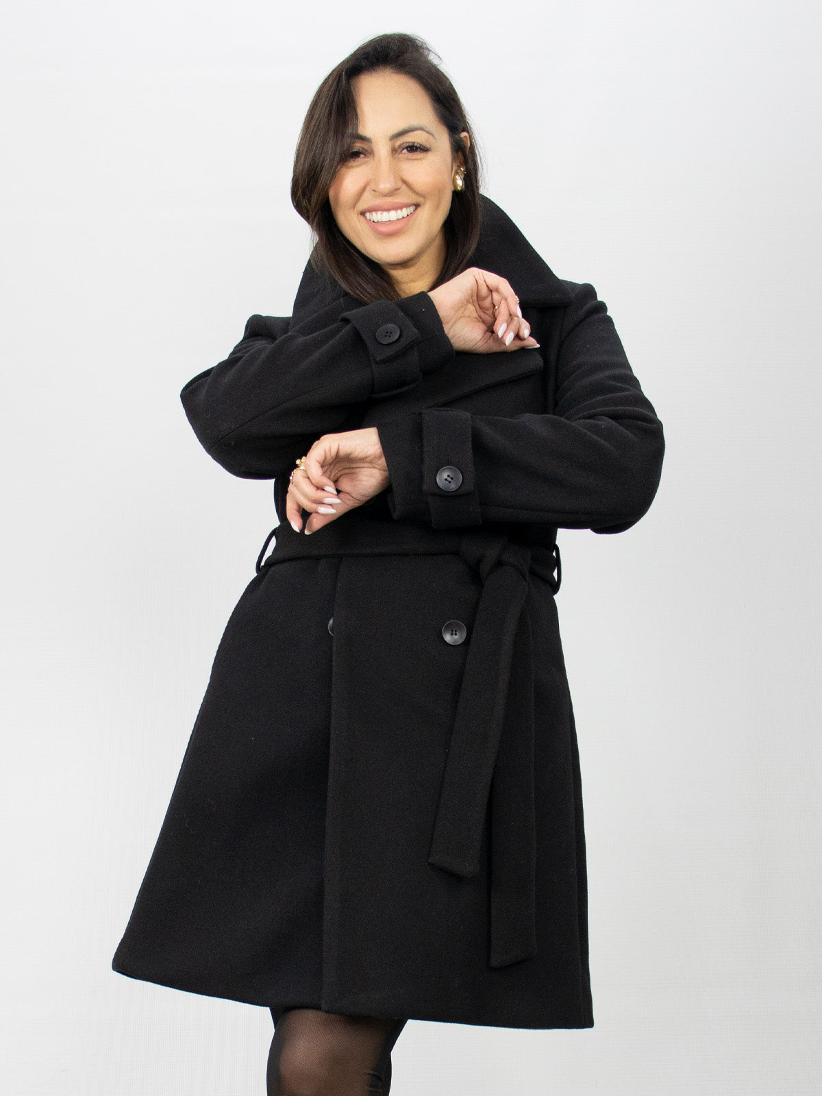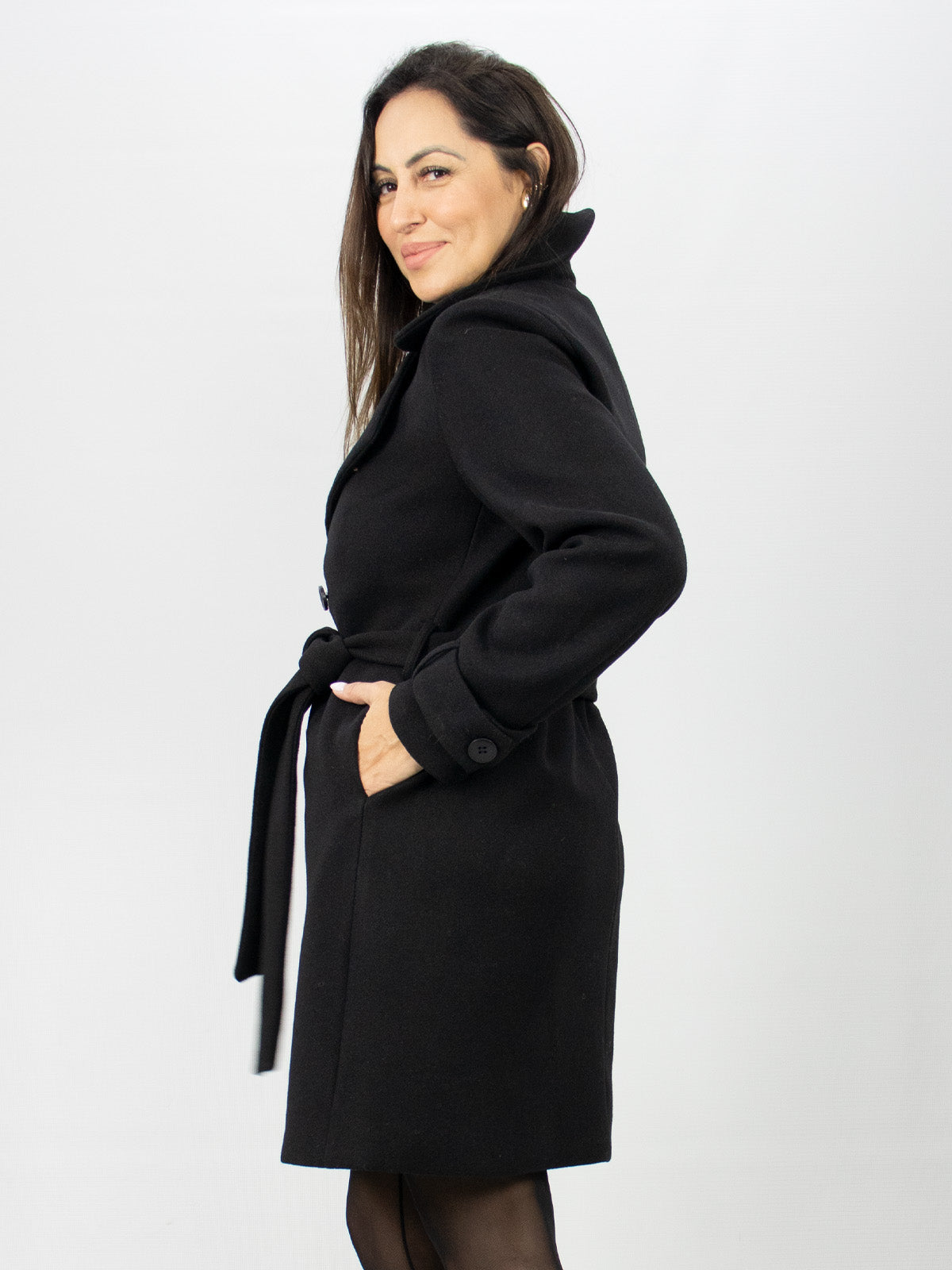 O Casaco Verona é uma peça sofisticada. Sua modelagem é clássica, conta com um recorte nas costas, possui uma gola de gola Blazer, conta com fechamento frontal transpassado por abotoamento, acompanha uma faixa do mesmo tecido, sendo possível ajusta-la na cintura para um visual mais acinturado, bolsos laterais, seu comprimento é médio alongado, conta com detalhes nos punhos para ajuste de deixar a manga mais solta ou não. Uma peça ideal para dias mais gelados.