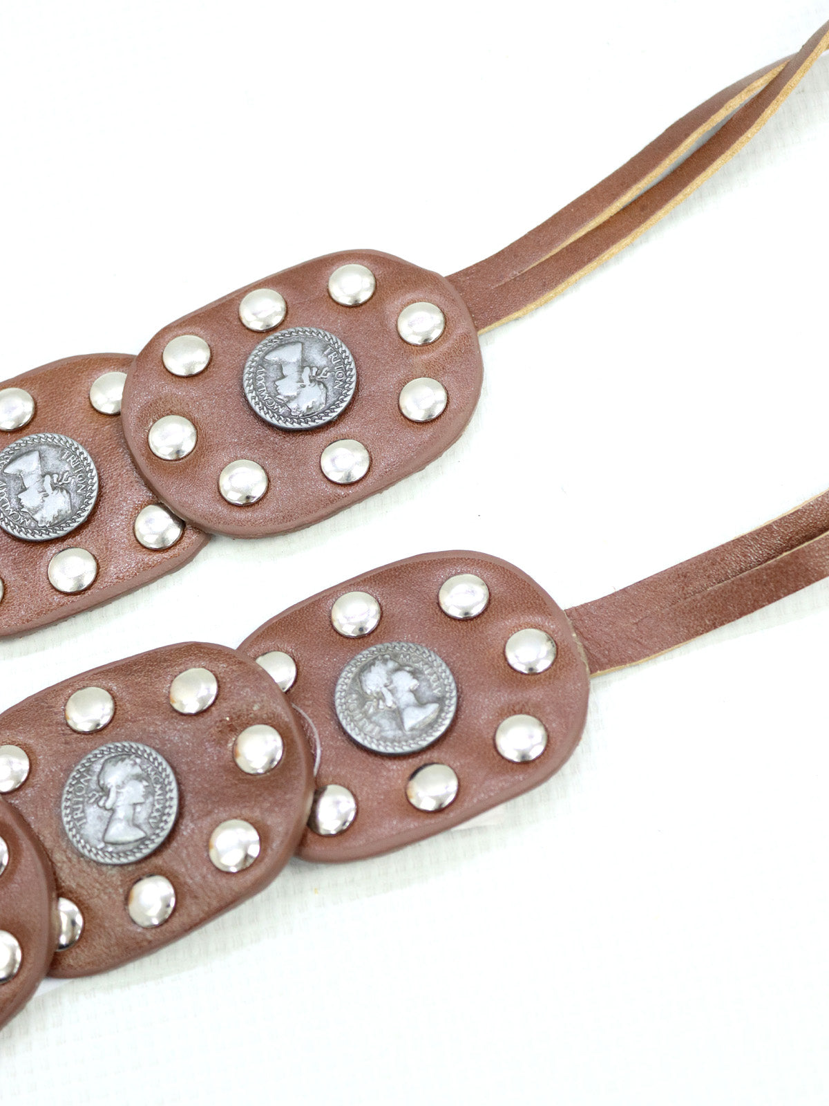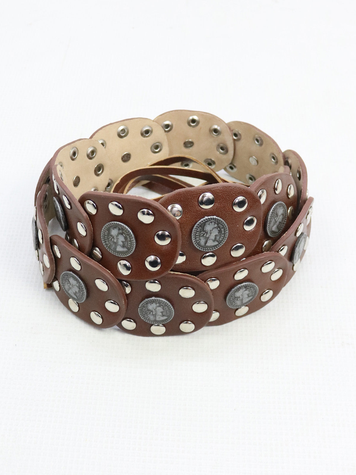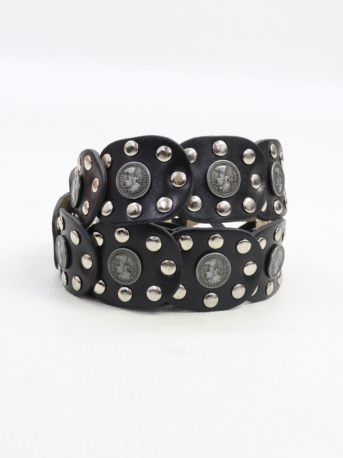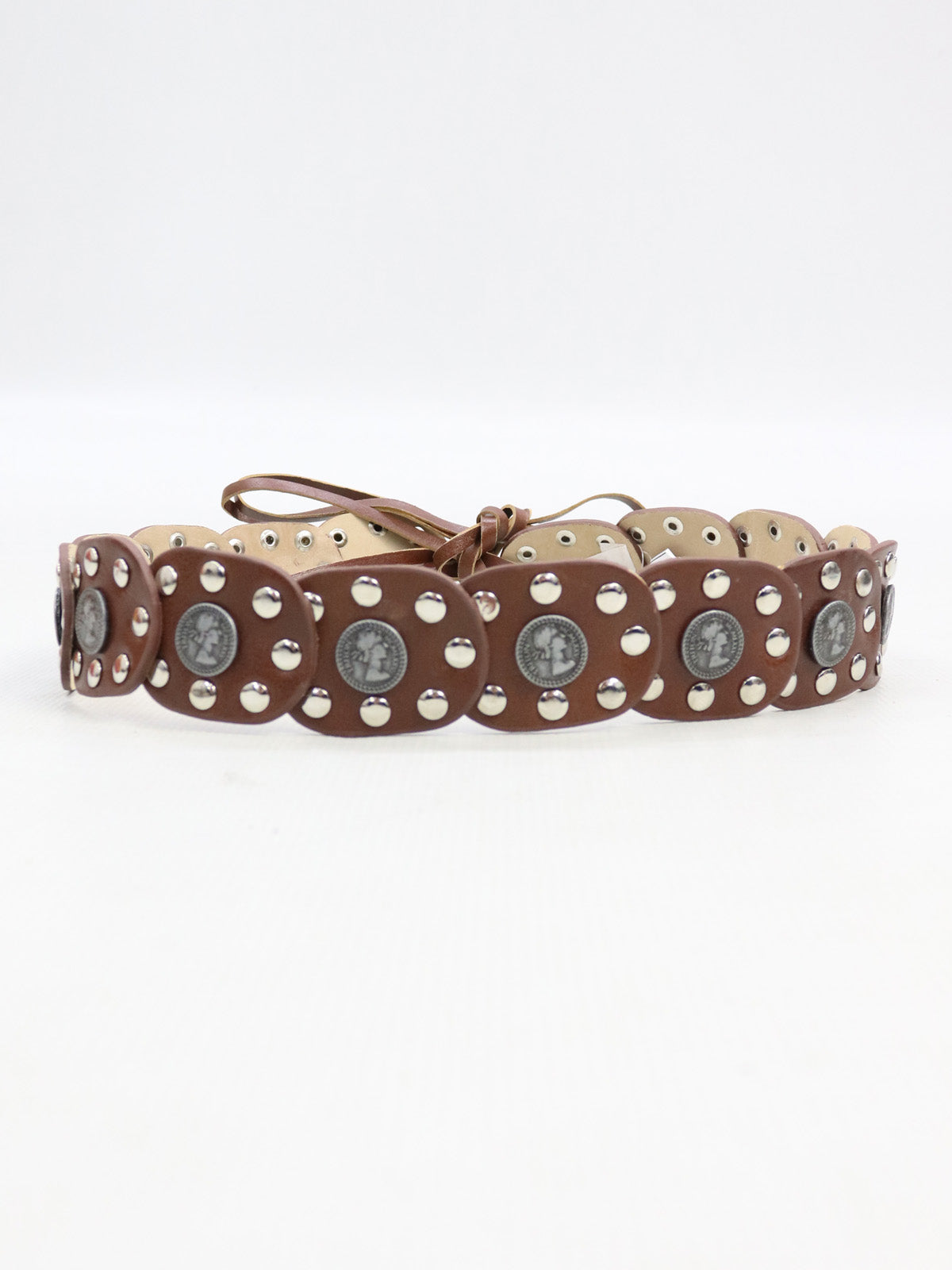 O Cinto Gaulle agrega estilo ao look. Em toda sua extensão ele possui aplicações de medalhas e tachas no tom níquel e ônix, com amarração por um cordão fino de couro nas duas extremidades, fazendo toda diferença ao combinar com peças mais clássicas ou mais estilosas.