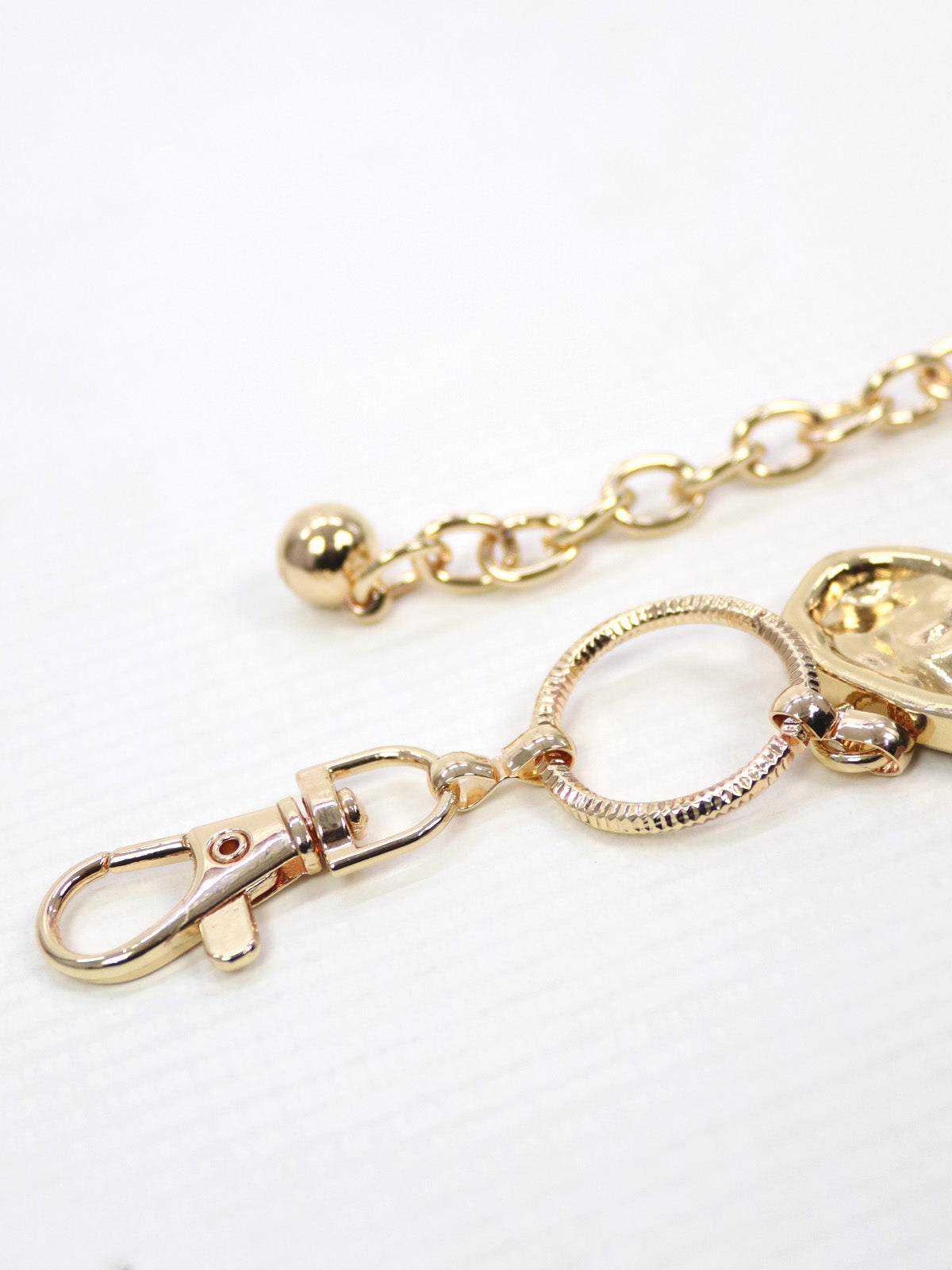 Confeccionado em metal leve, ajusta-se perfeitamente ao corpo por meio da corrente alongada, permitindo o uso em diferentes alturas da cintura ou quadril.
