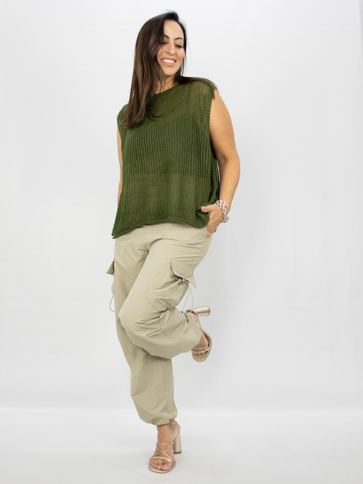 O Colete de Tricot feminino Ava, possui uma modelagem mais solta ao corpo, com um comprimento curto, sua trama é mais aberta dando um ar mais despojado, com decote redondo. É uma peça versátil que pode ser encaixar em diversas ocasiões, do elegante ao descontraído.
