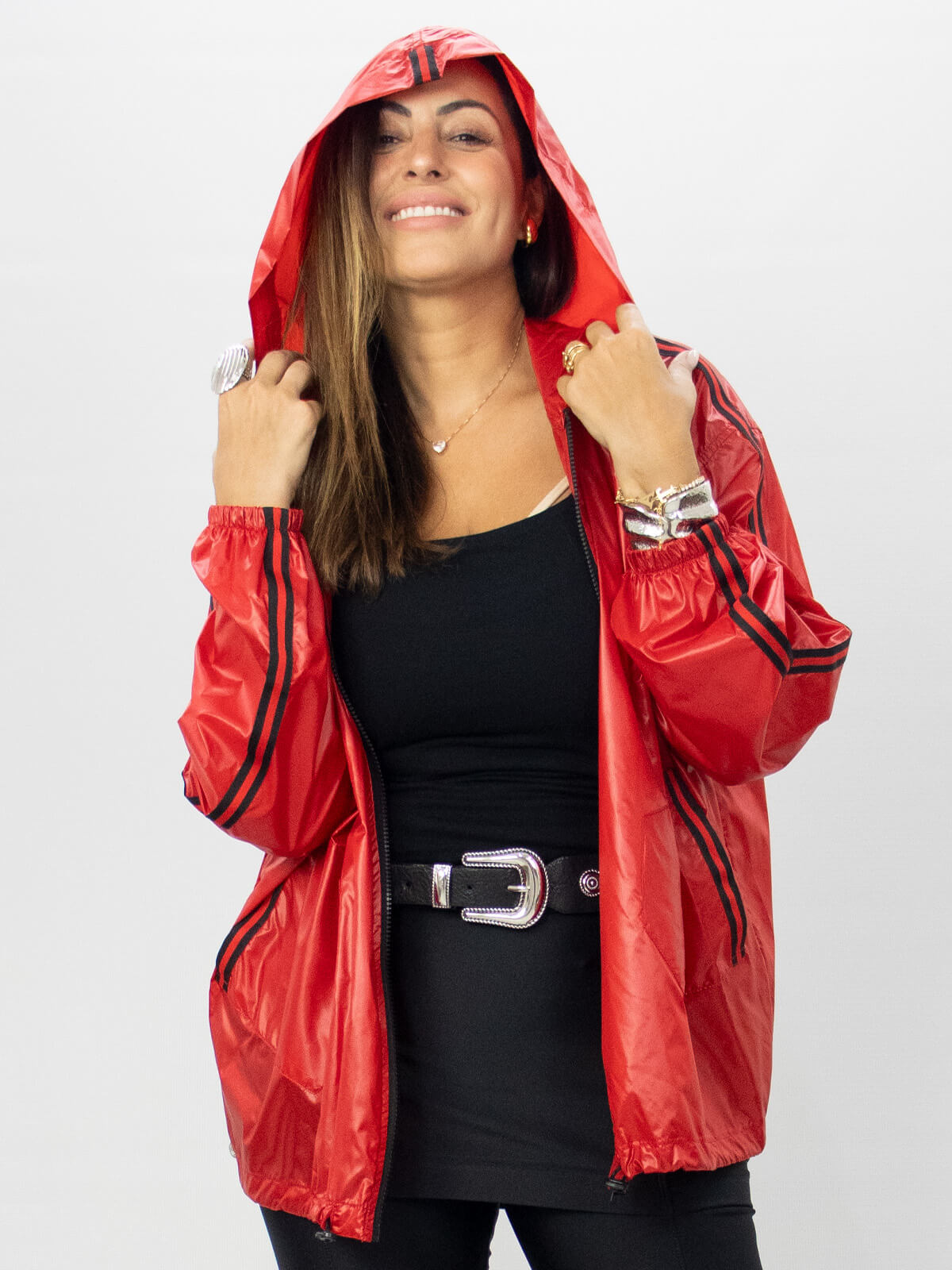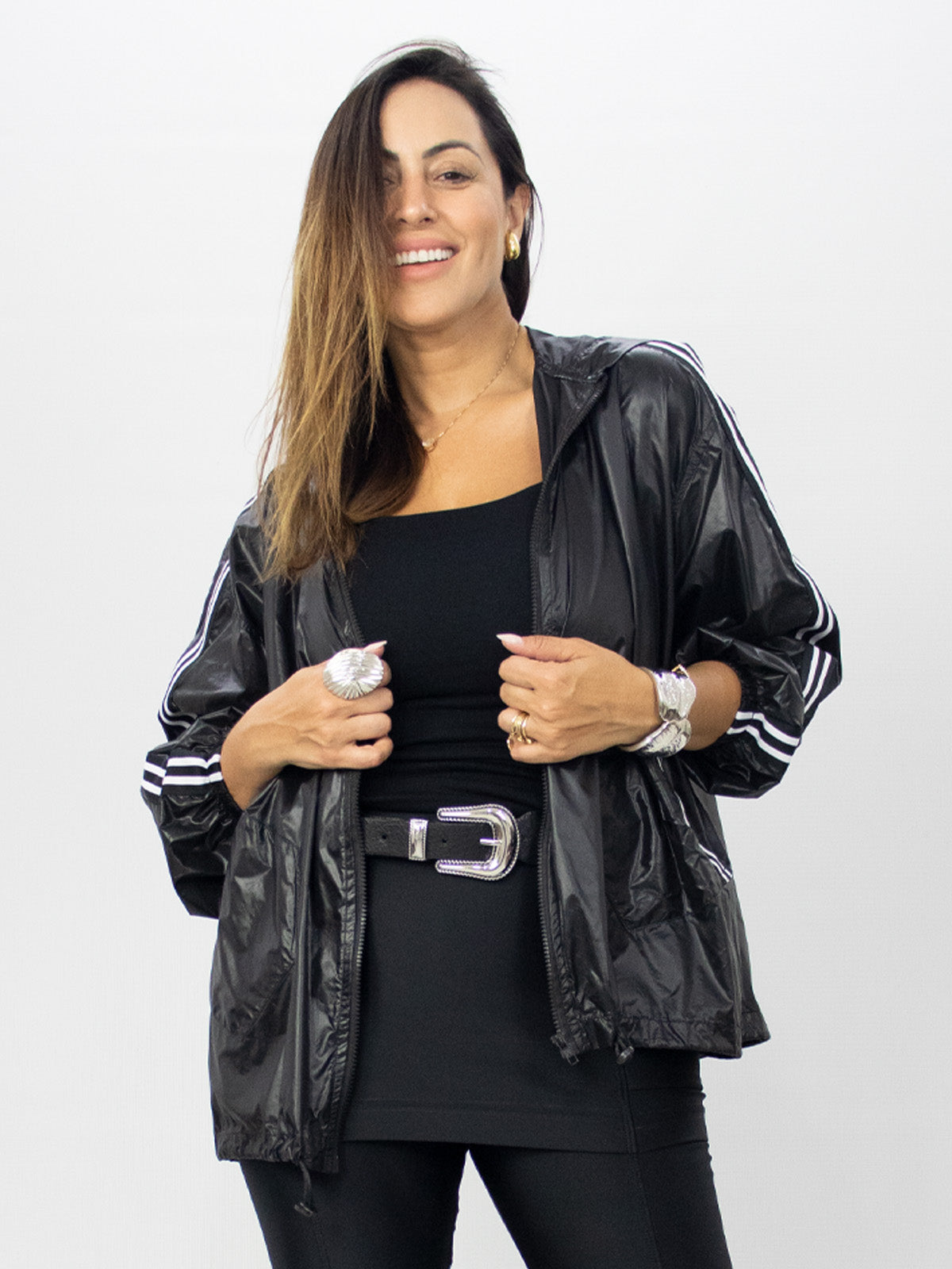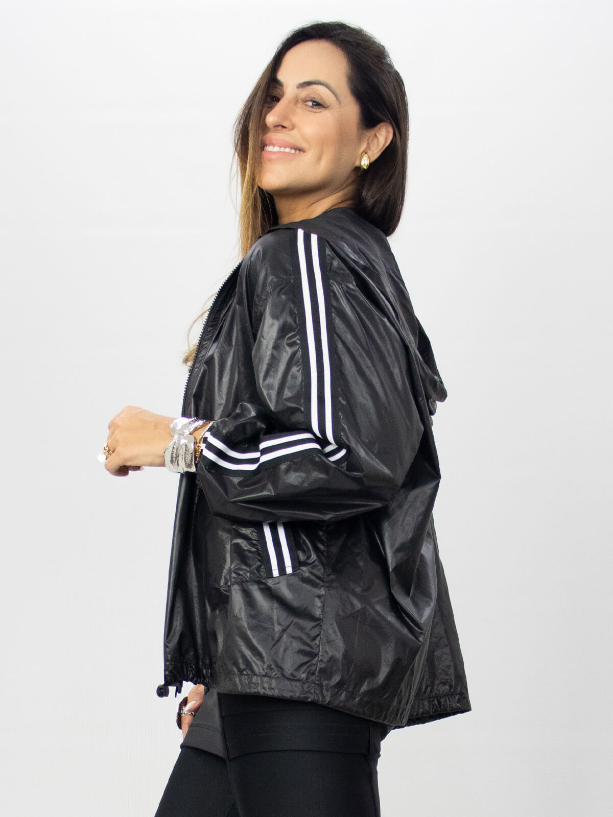 A nossa Jaqueta corta vento Hadra possui manga longa, capuz detalhado por uma faixa listrada na ponta, bolsos laterais práticos que oferecem funcionalidade, fechamento frontal por zíper, regulador na cintura garantindo um ajuste perfeito, seu tecido é leve com uma modelagem mais fluida, com comprimento médio, é a peça ideal para quem busca praticidade em qualquer clima.