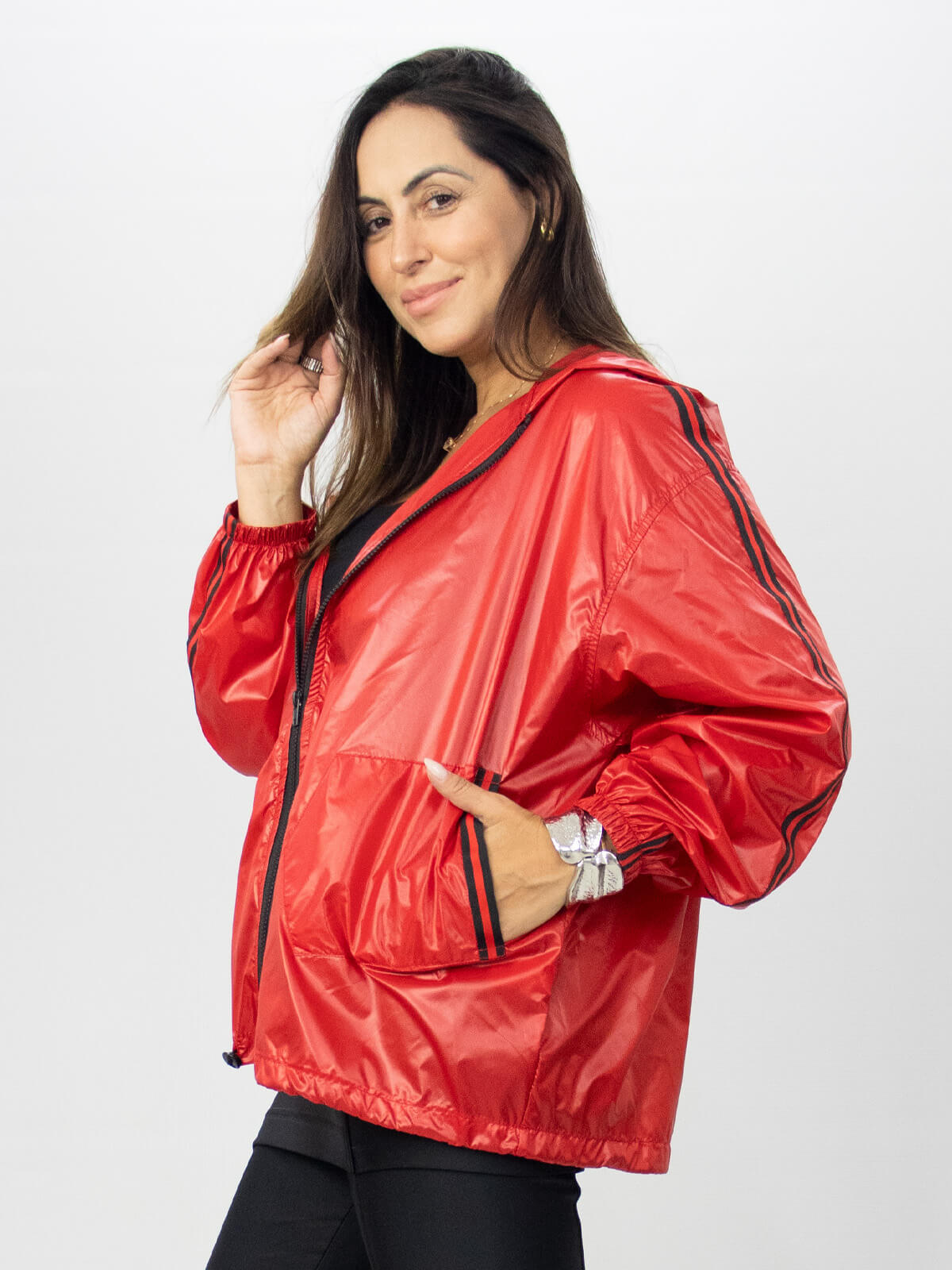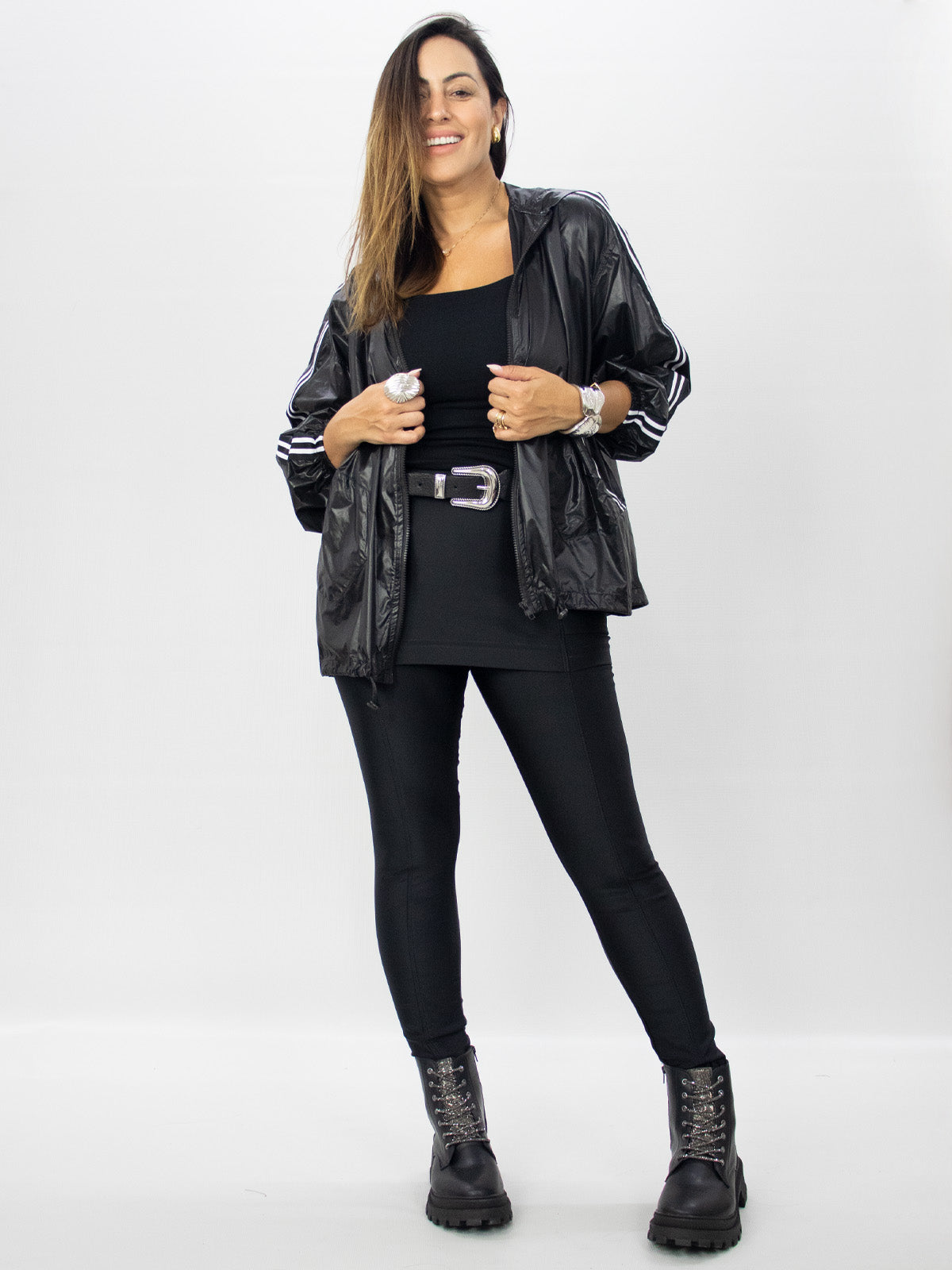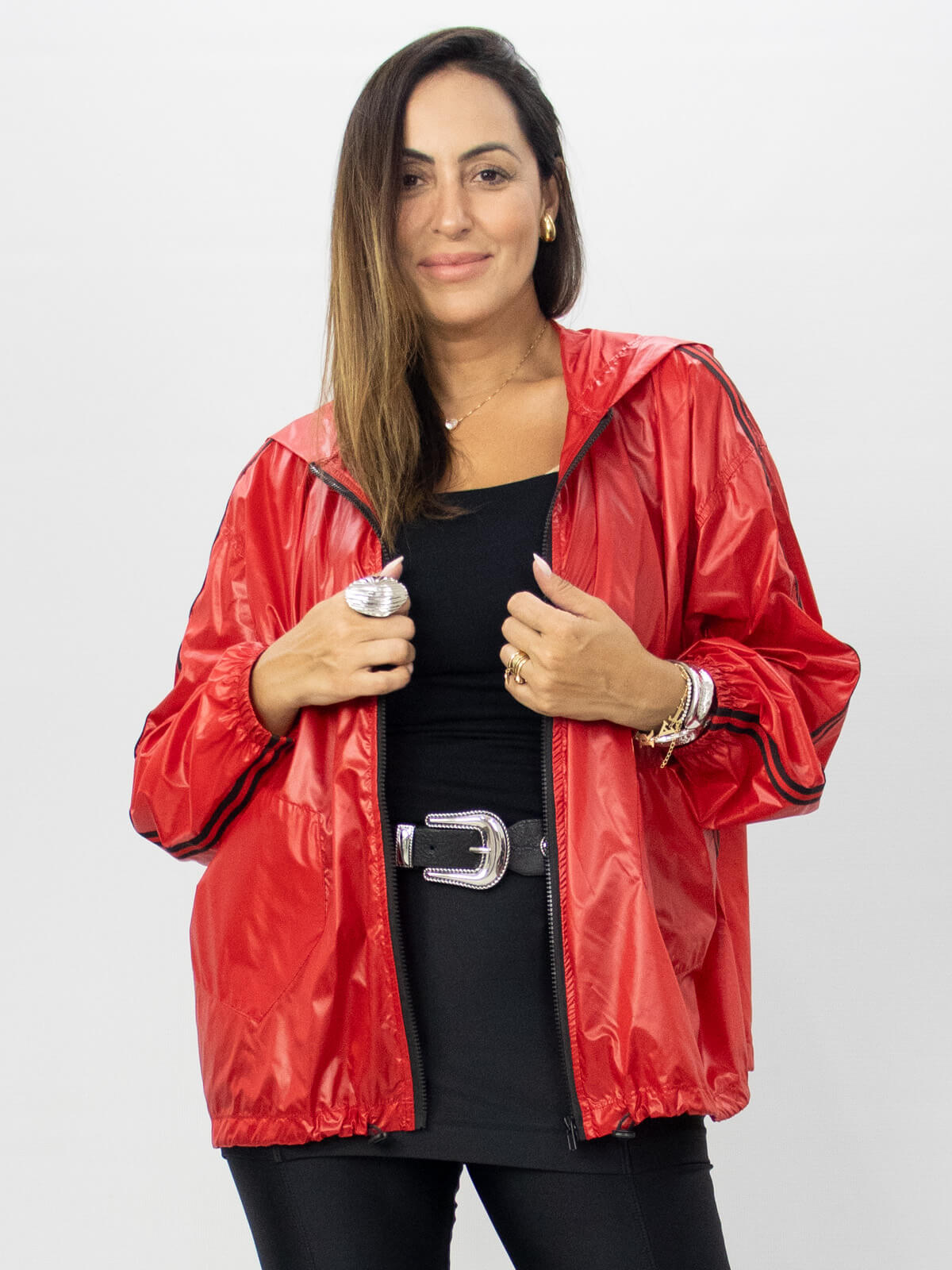 A nossa Jaqueta corta vento Hadra possui manga longa, capuz detalhado por uma faixa listrada na ponta, bolsos laterais práticos que oferecem funcionalidade, fechamento frontal por zíper, regulador na cintura garantindo um ajuste perfeito, seu tecido é leve com uma modelagem mais fluida, com comprimento médio, é a peça ideal para quem busca praticidade em qualquer clima.