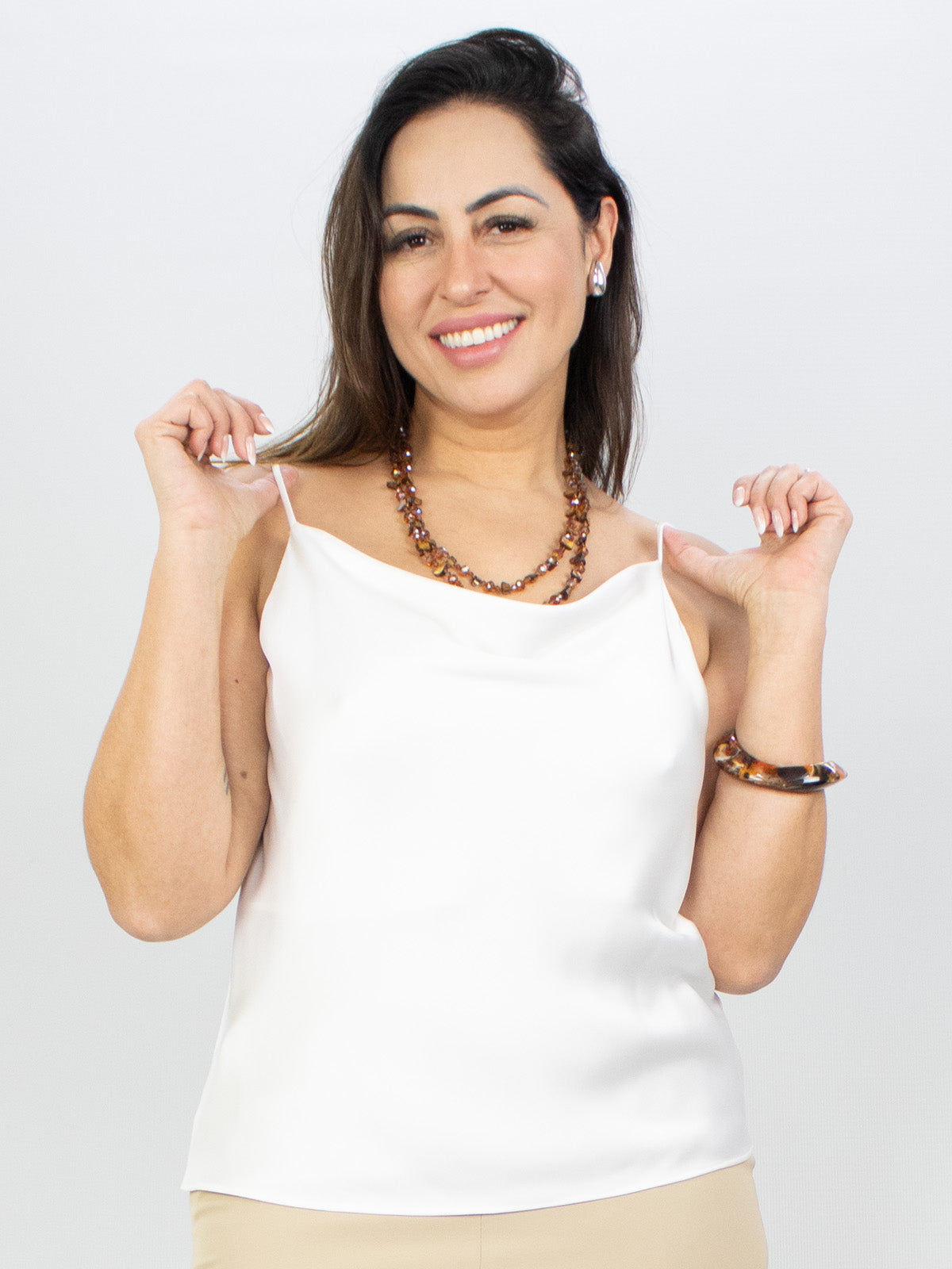A Regata Feminina Nayeli combina delicadeza e elegância em uma modelagem reta e ajustada ao corpo, realçando a silhueta de forma sutil. Seu design conta com alças finas ajustáveis, decote degagê e comprimento curto, conferindo um toque feminino e moderno. Versátil, transita facilmente entre o casual e o sofisticado, tornando-se uma peça essencial no guarda-roupa.