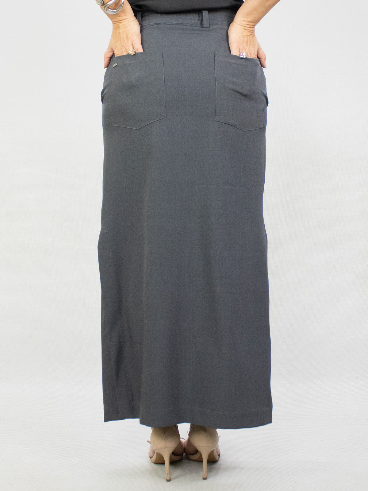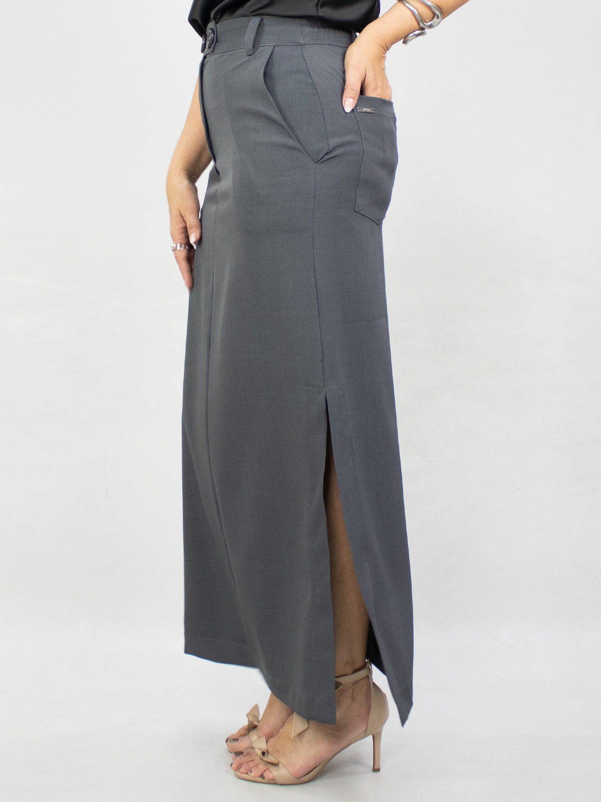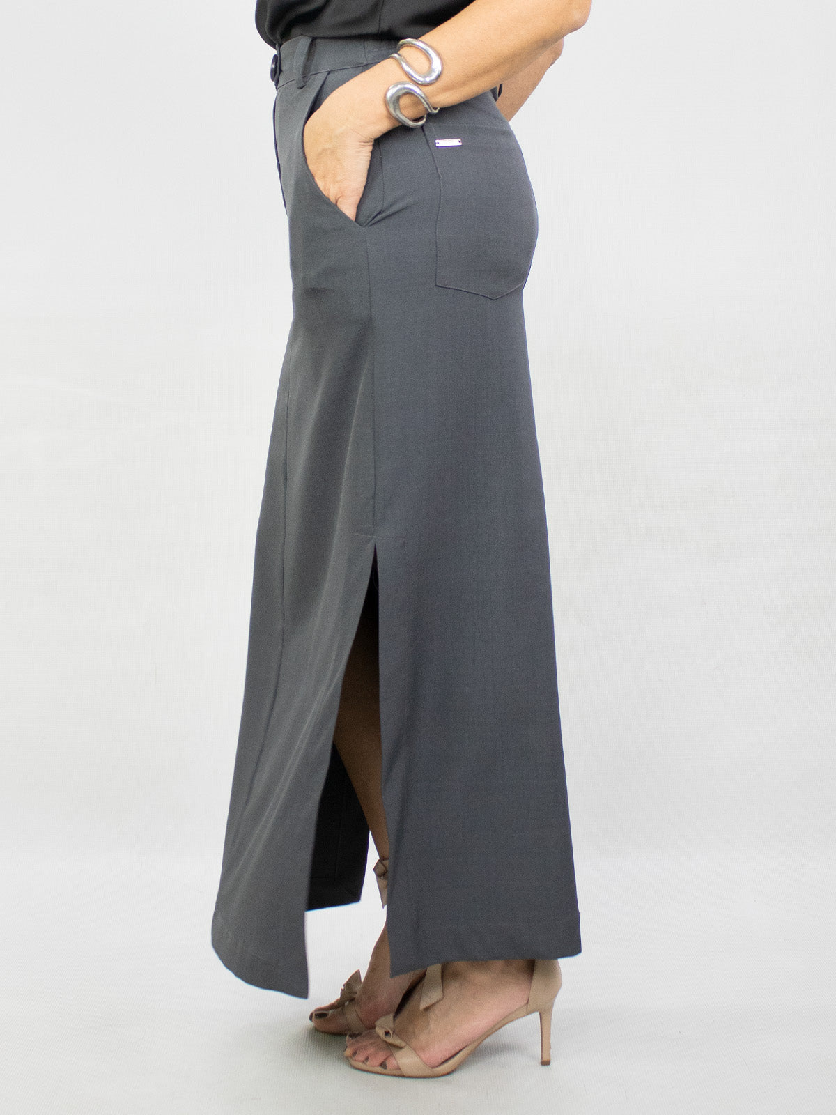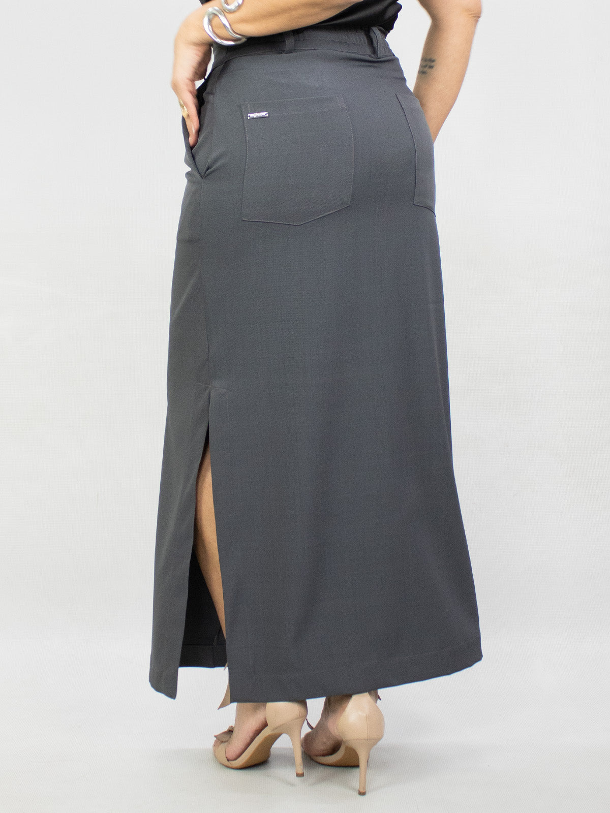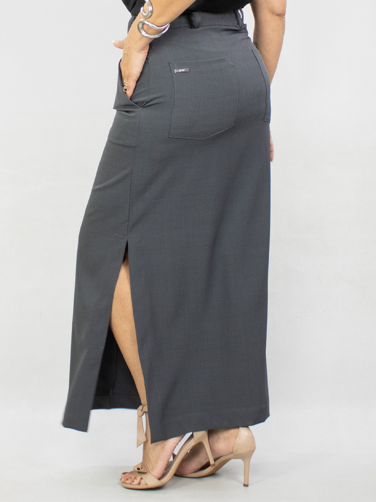 A Saia Feminina Glauciane é sinônimo de sofisticação atemporal. Confeccionada em tecido encorpado de alfaiataria, possui modelagem reta que alonga a silhueta, comprimento longo e cintura média. O cós aplicado com passantes, elástico na parte de trás e fechamento frontal por zíper e botão garantem ajuste perfeito e conforto ao vestir. Os bolsos frontais e posteriores trazem praticidade sem perder a elegância. Uma peça versátil que transita entre looks clássicos e modernos com facilidade.