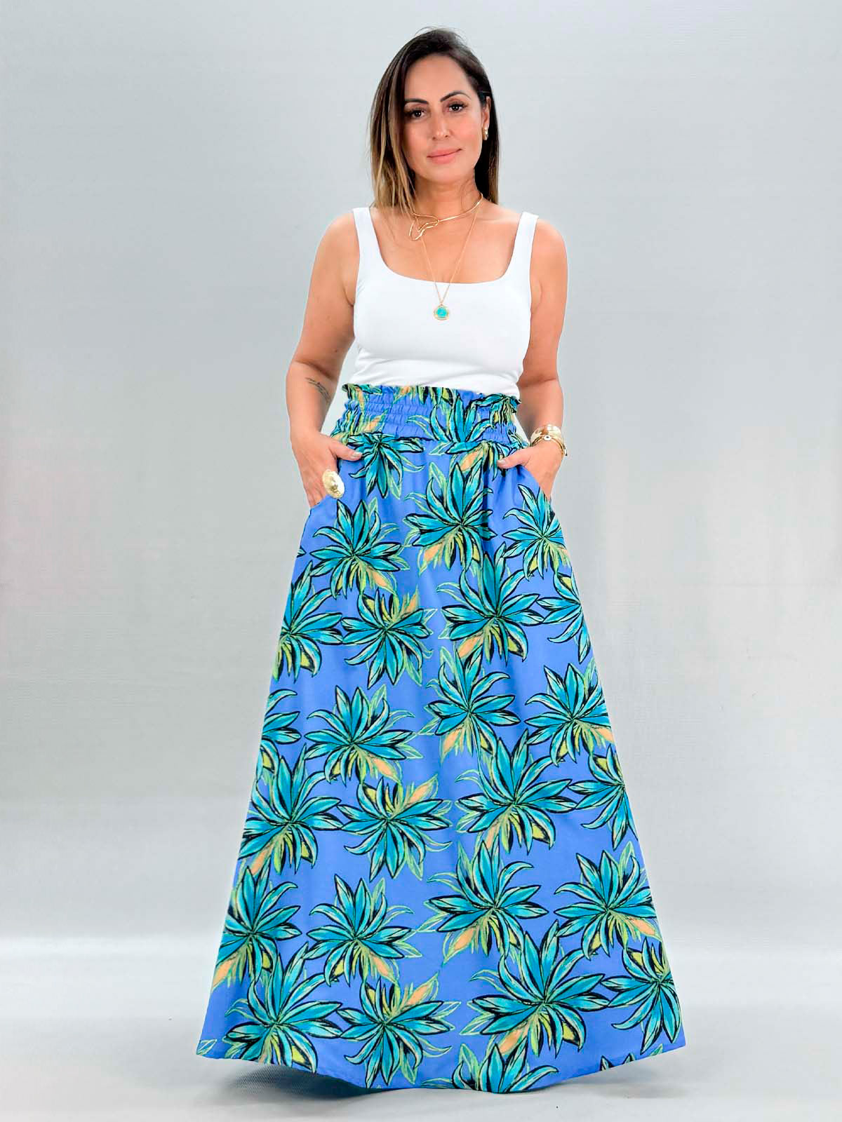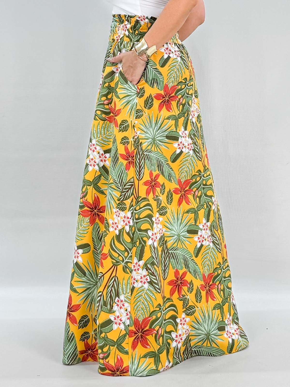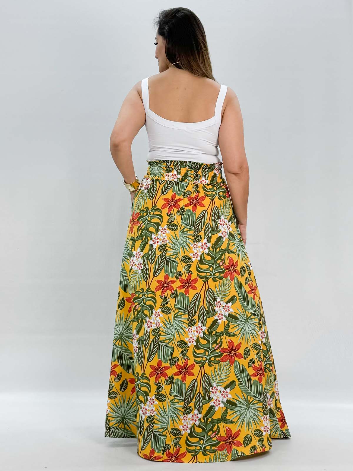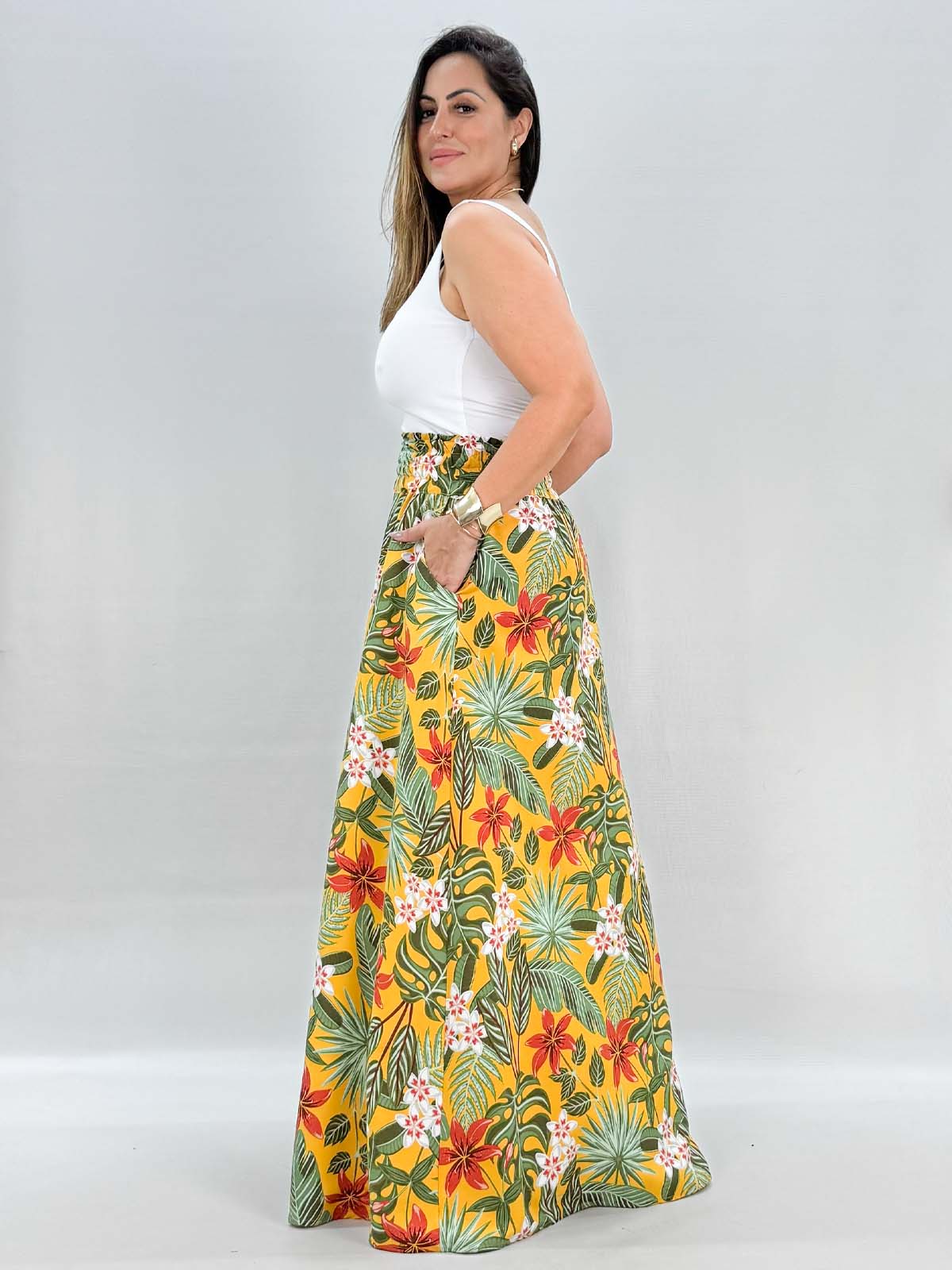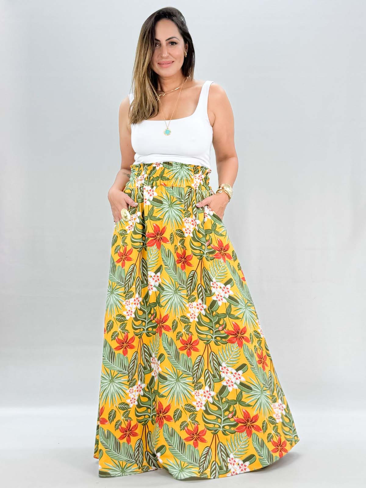 A Pitanga é uma peça atemporal para quem busca, conforto e estilo. Com uma modelagem mais fluida, estruturada, ela transmite leveza, seu comprimento por ser longo ajuda a alongar a silhoueta, seu cós é largo com elástico para um conforto maior ao usá-la, possui bolsos nas laterais. Essa saia proporciona elegância, versatilidade e permite diferentes combinações para o dia a dia.