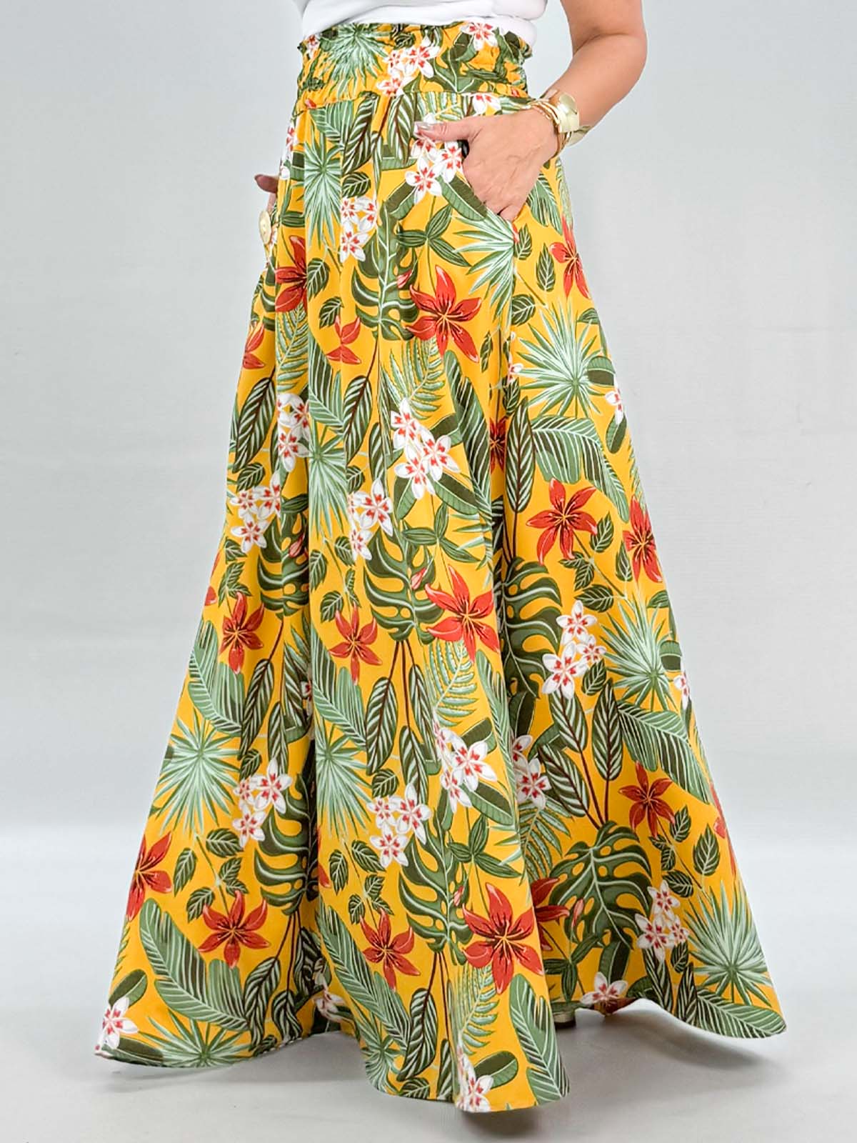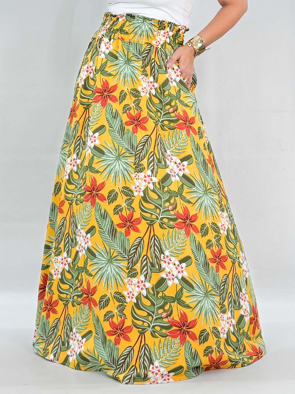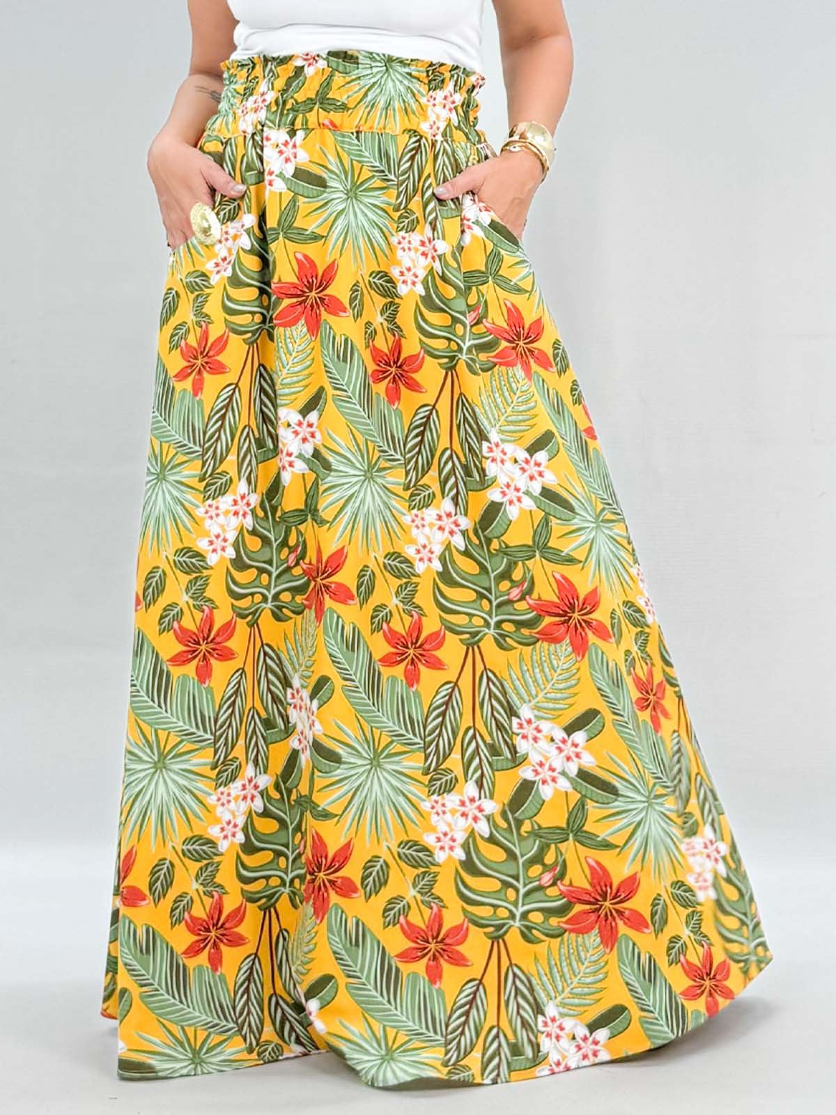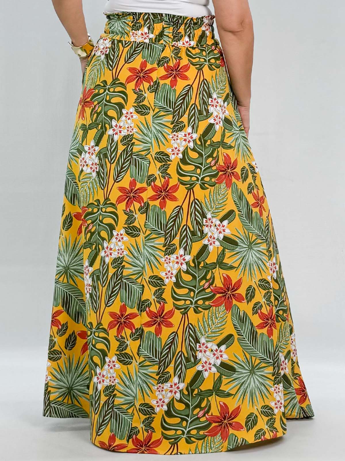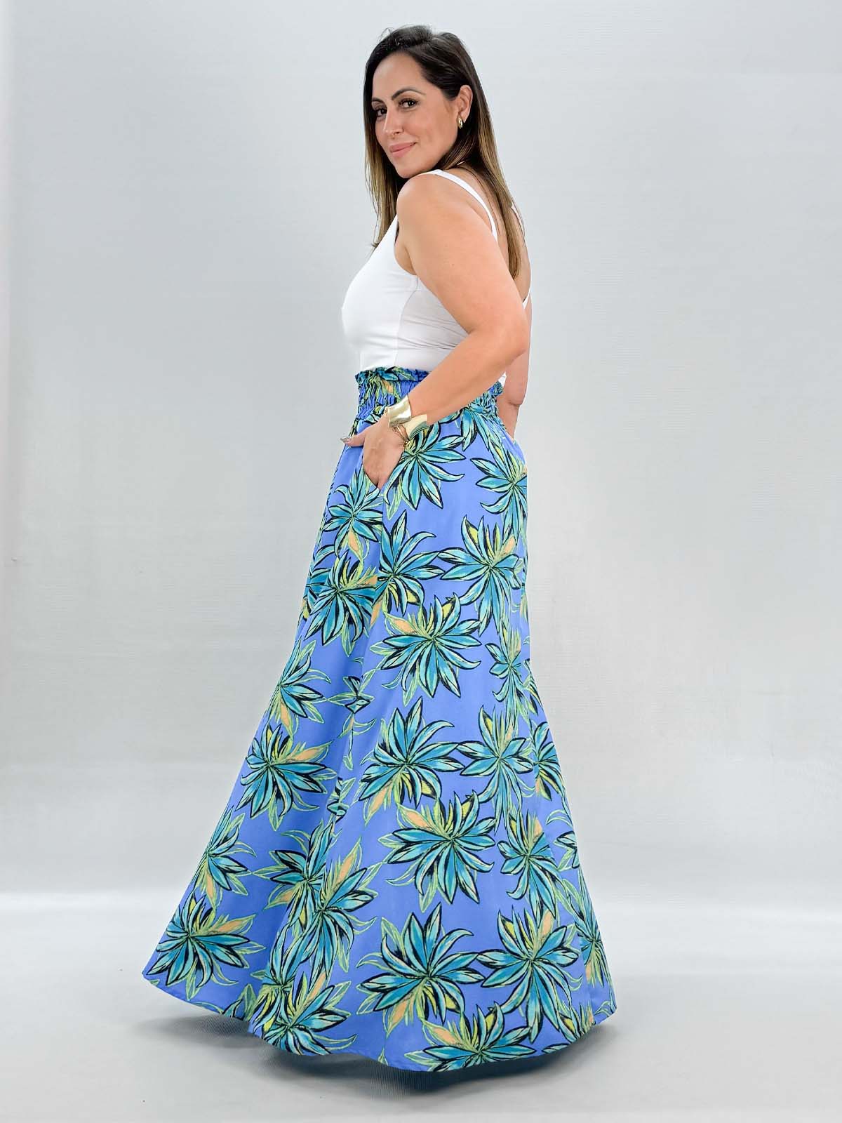 A Pitanga é uma peça atemporal para quem busca, conforto e estilo. Com uma modelagem mais fluida, estruturada, ela transmite leveza, seu comprimento por ser longo ajuda a alongar a silhoueta, seu cós é largo com elástico para um conforto maior ao usá-la, possui bolsos nas laterais. Essa saia proporciona elegância, versatilidade e permite diferentes combinações para o dia a dia.