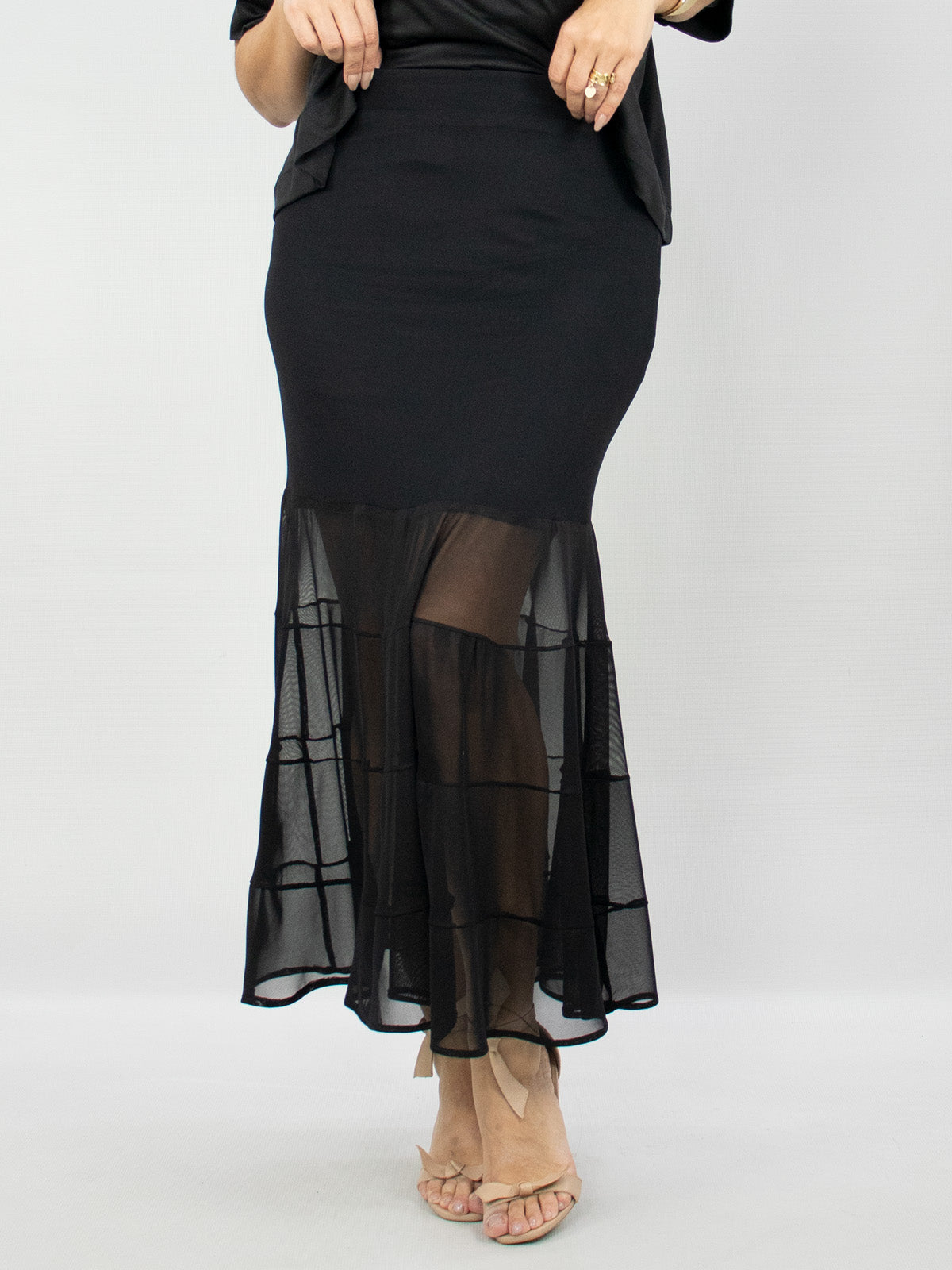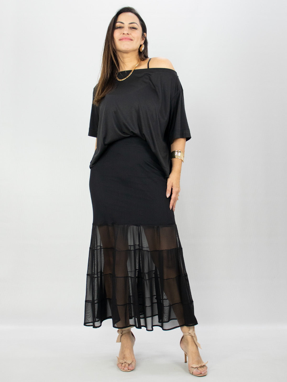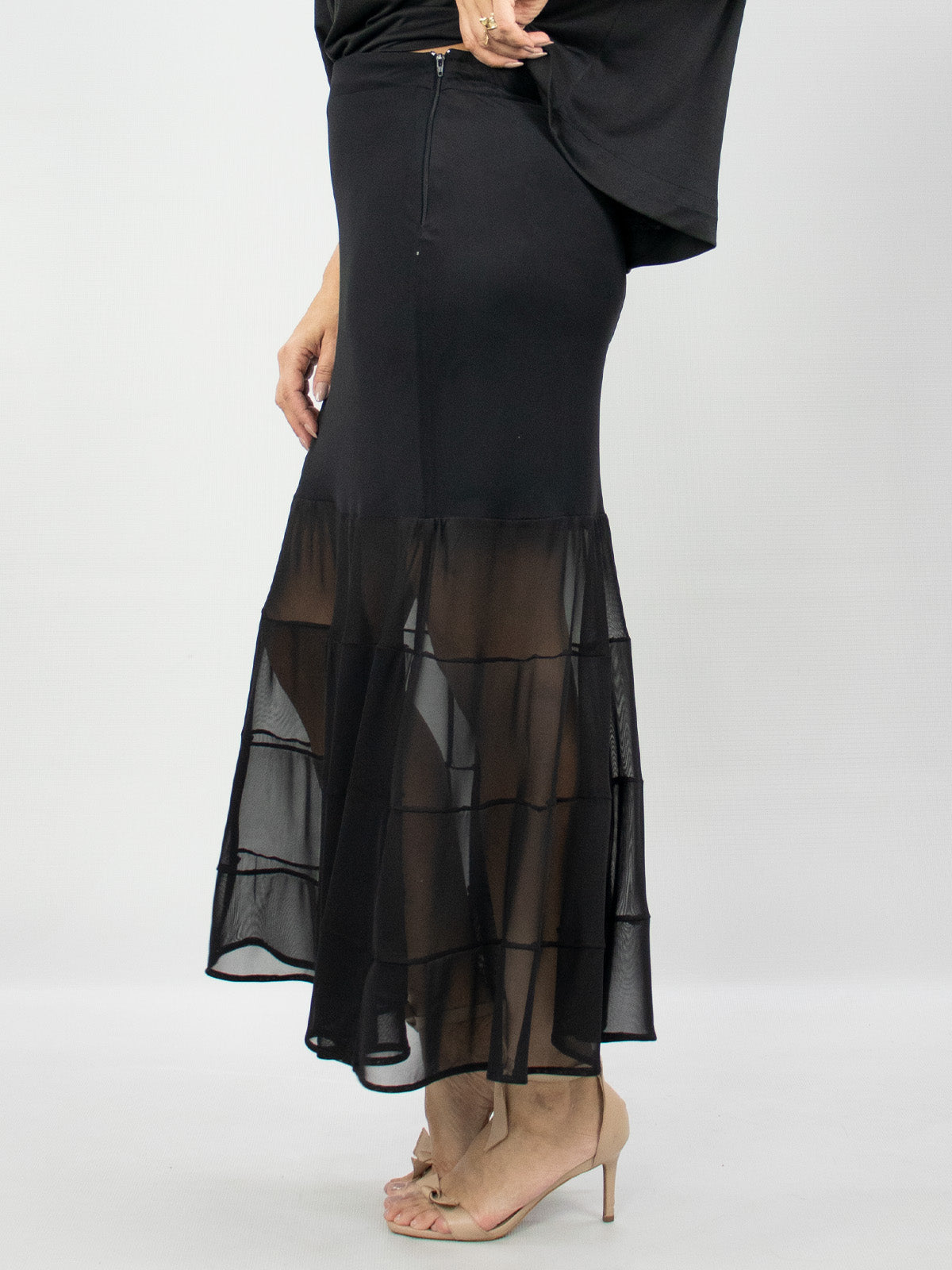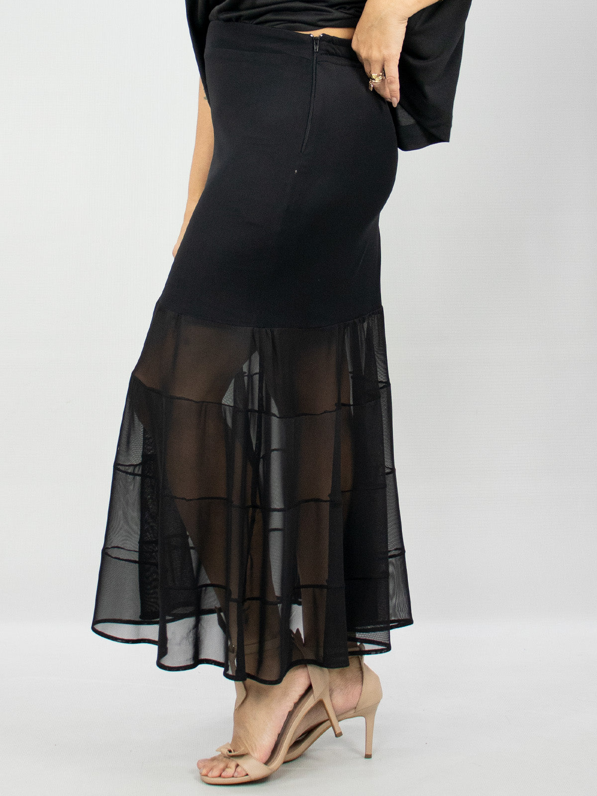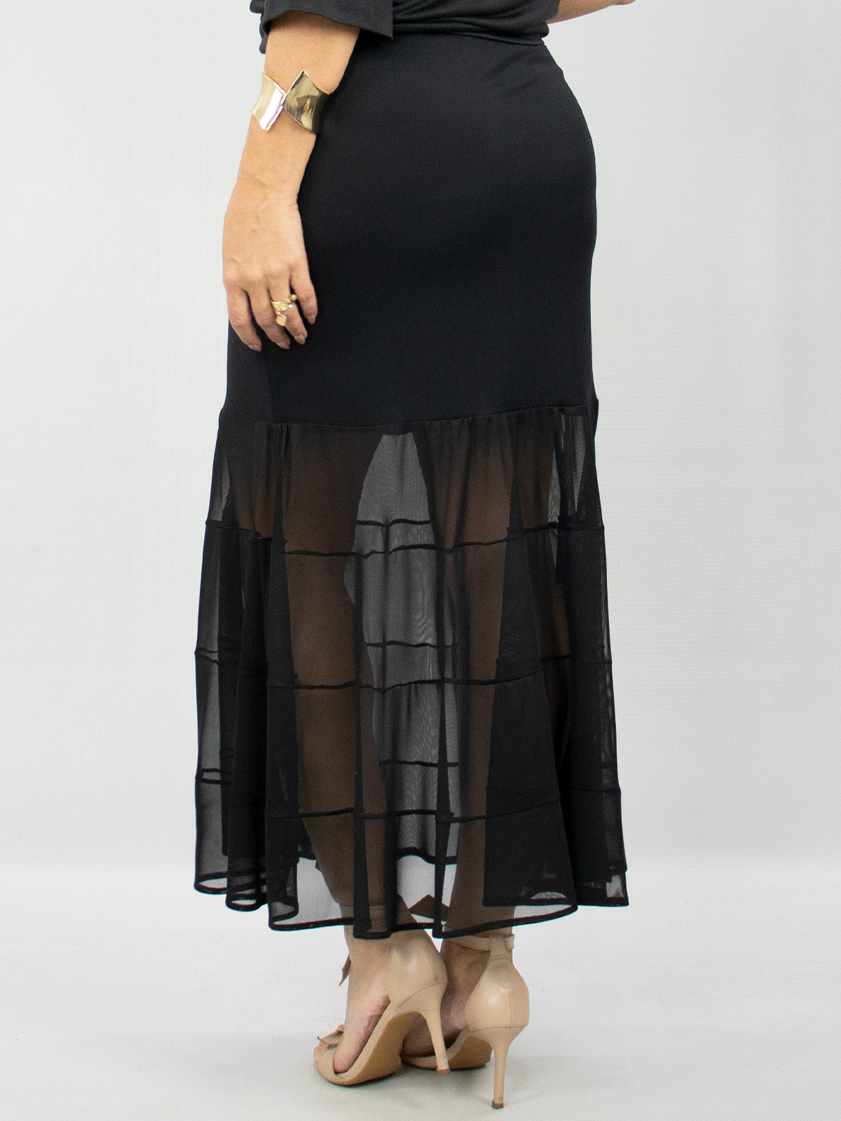 A Saia Viola tem um ar romântico e moderno, o tule traz leveza e feminilidade ao estilo. Sua modelagem é ajustada ao corpo, com cós médio elástico na parte superior.
