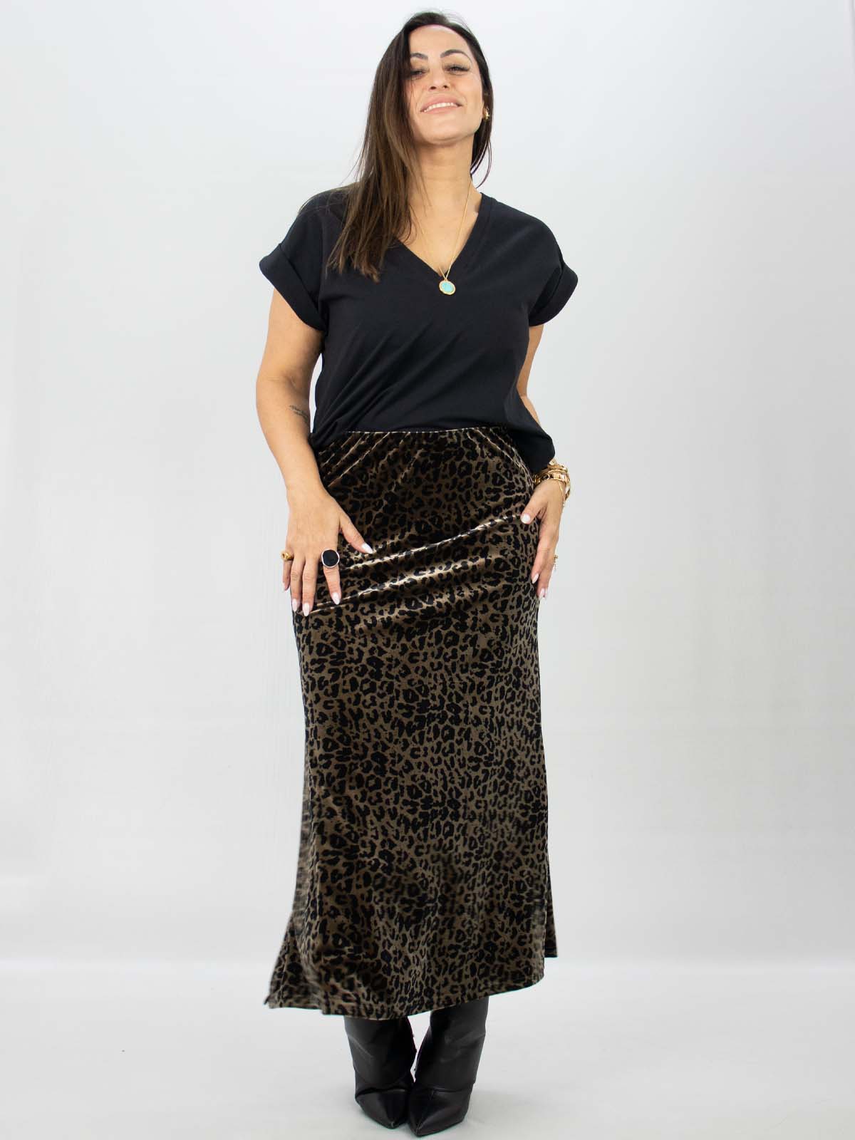 A Saia Cler de Veludo é naturalmente elegante. Seu comprimento é longo, sua modelagem mais ajustada na altura do quadril e ficando mais solta e fluida embaixo deixando seu caimento sofisticado, possui cós reto com elástico. Uma peça versátil para diferentes ocasiões e combinações de acessórios.