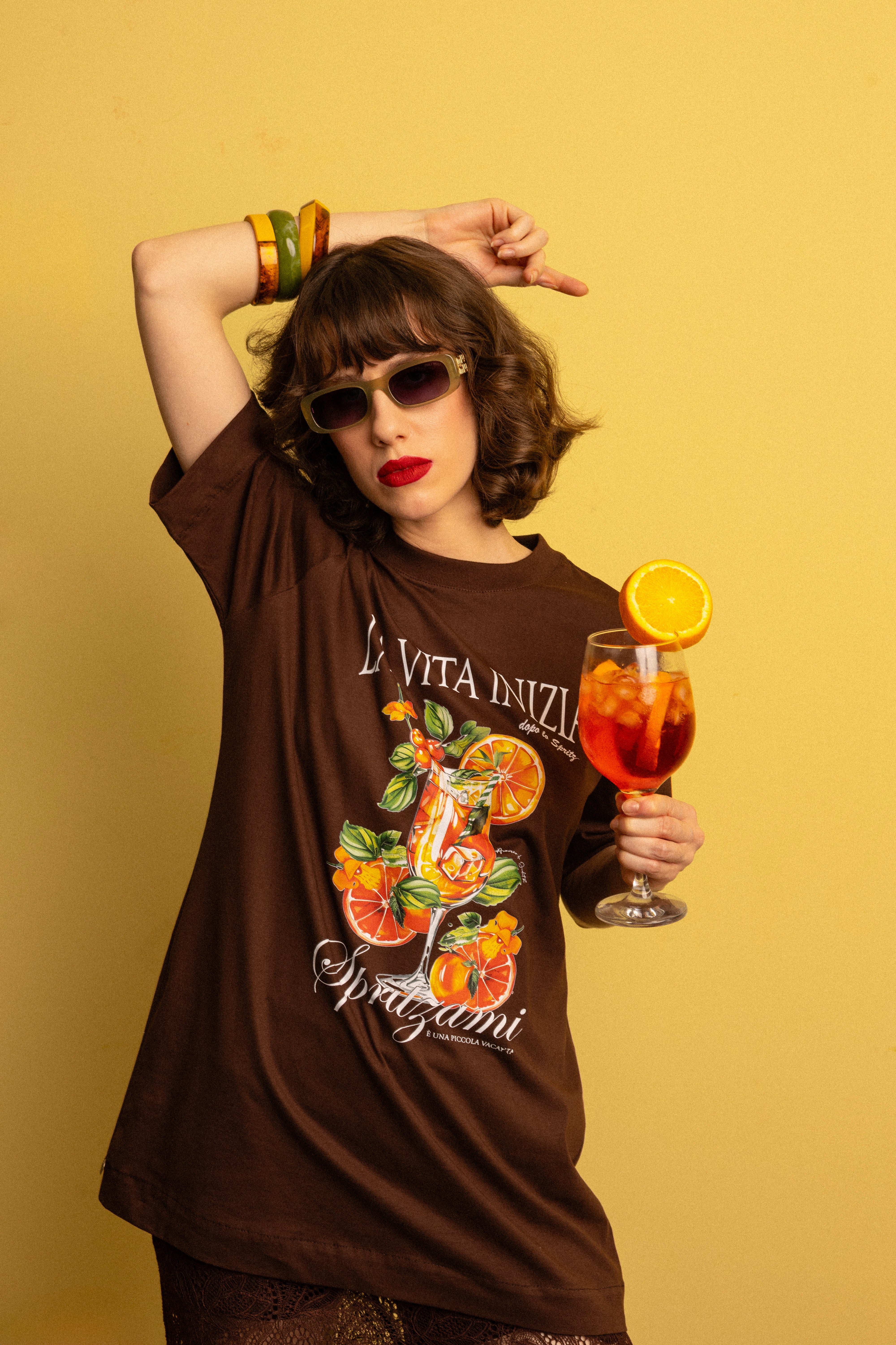 Variante Marrom: “La vita inizia dopo lo Spritz” — Tradução: “A vida começa depois do Spritz”