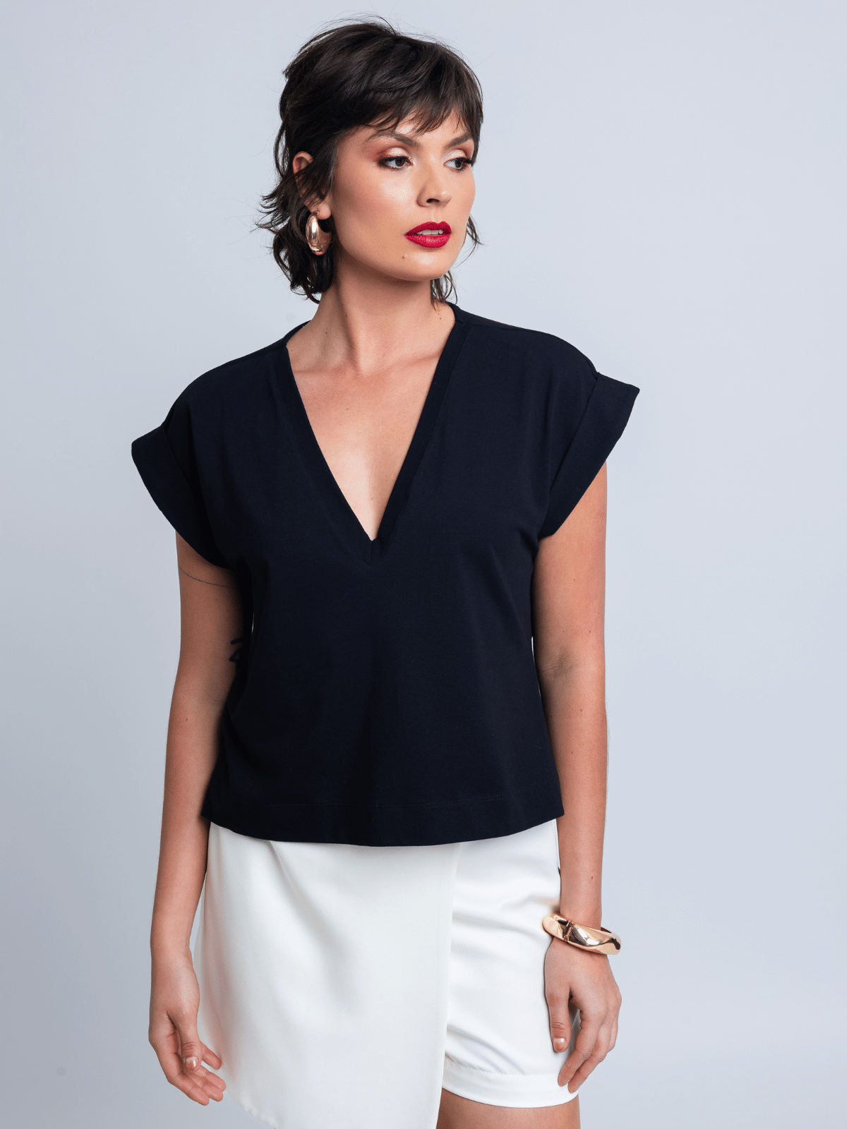 A Tshirt Feminina Algodão Egípcio Babi é uma peça clássica e atemporal, que não pode ficar de fora do seu armário. Com uma modelagem média curta, ela tem um caimento mais fluido, com gola V, manga curta com a barrinha dobrada dando um charme em sua modelagem. Uma blusa que vai te manter elegante e confortável o dia todo.