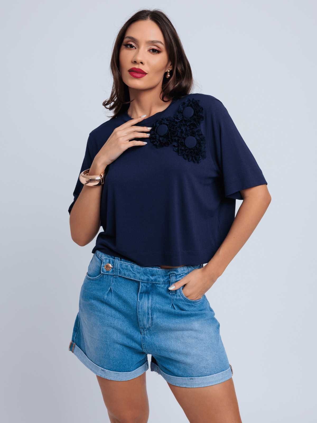 Com modelagem boxy mais curtinha e proposta moderna, ela eleva até os looks mais simples com delicadeza e personalidade.