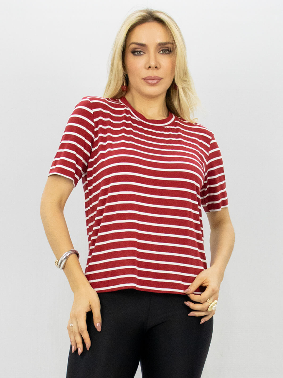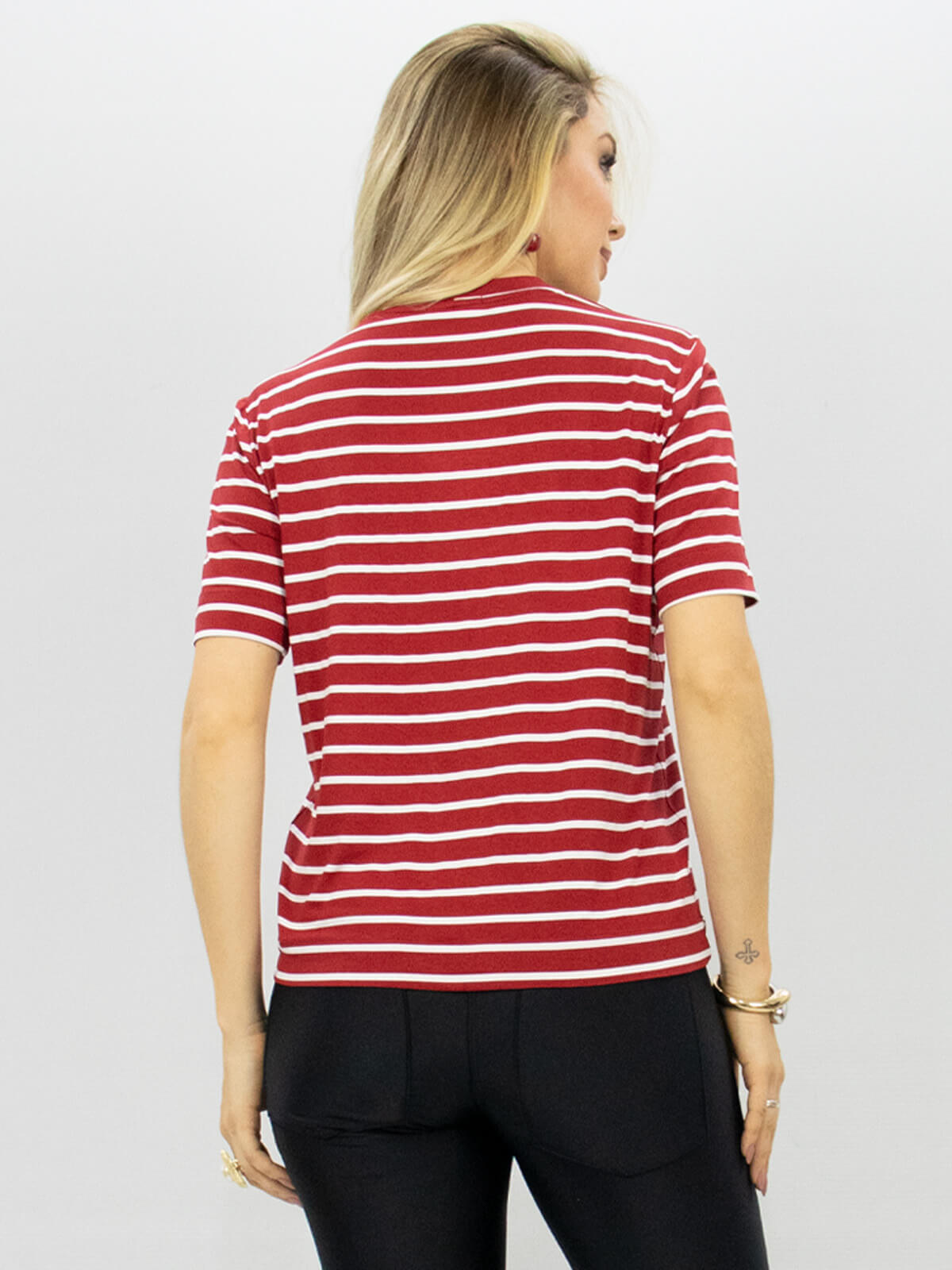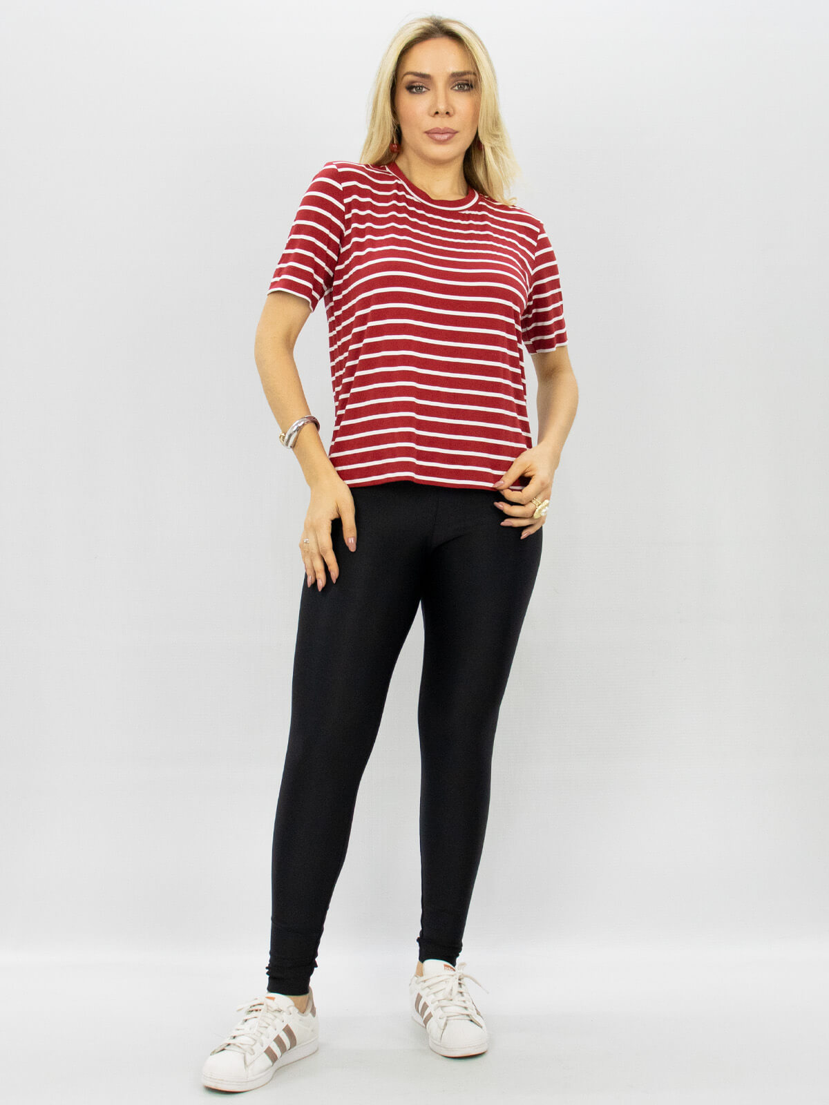 Nossa T-Shirt Lissa vem com listras na horizontal, possui um toque macio e leve e fresco, com uma modelagem moderna, gola careca, manga e comprimento curto, mais solta ao corpo, ela combina estilo e conforto de forma descomplicada. Perfeita para um look mais fashion.