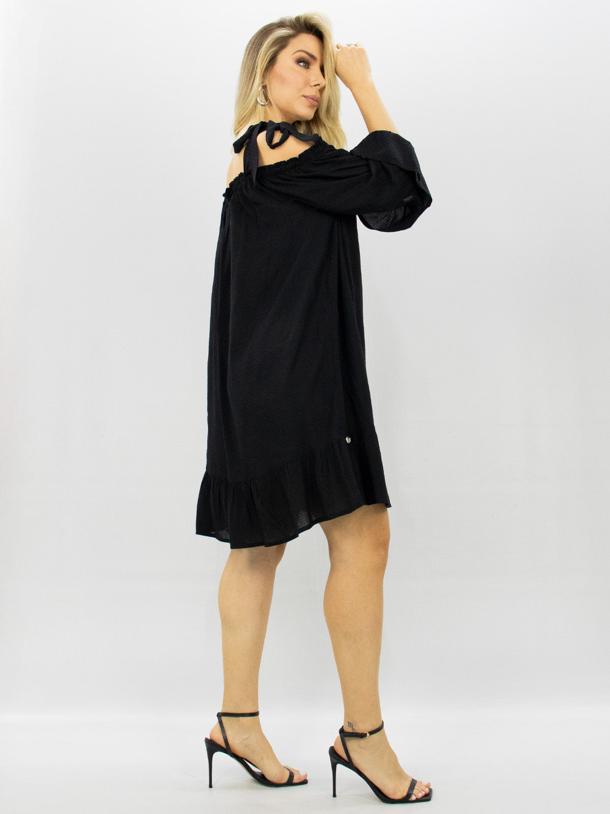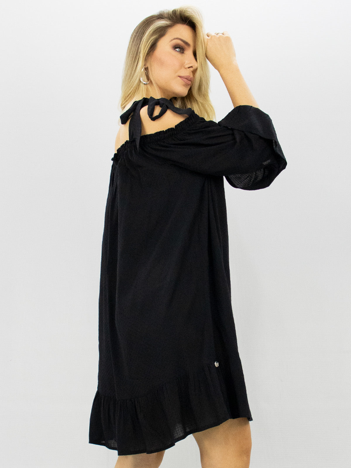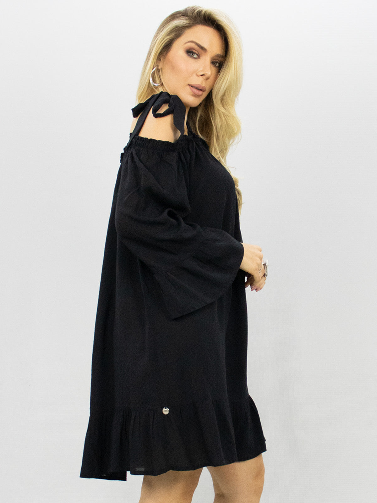 O Vestido Bata Mon Cheri é charmoso e extremamente romântico. Com alças ajustáveis que se entrelaçam suavemente nos ombros, possui comprimento médio/curto, conta com babado na barra e nas mangas adicionando um toque de feminilidade, o tecido é fluído e macio. Uma peça que combina elegância e delicadeza para um look verdadeiramente inesquecível. Acompanha um shorts para um conforto maior ao usá-lo.