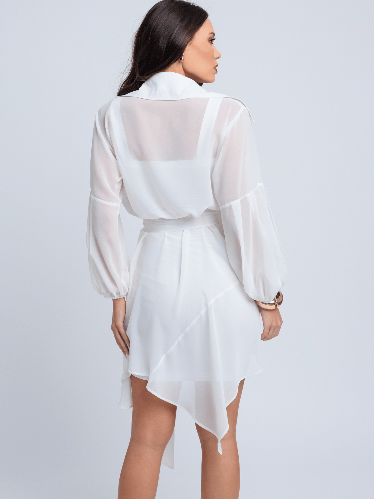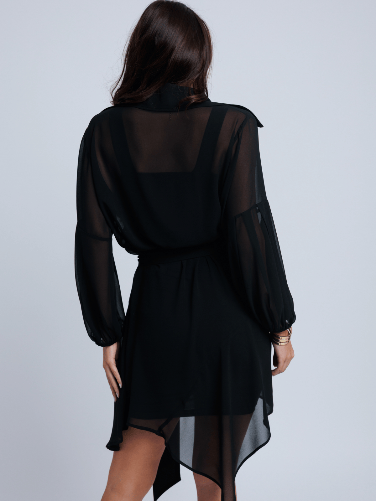 O Duccini é a prova de que um vestido pode ser pura maestria em construção, movimento e presença. Repleto de recortes estratégicos e assimetrias impecáveis, ele eleva o nível da modelagem e revela a sofisticação de quem domina o ofício da costura. A fluidez característica da musseline superflua confere leveza, transparência elegante e um caimento que desliza suavemente, acompanhando cada passo.
