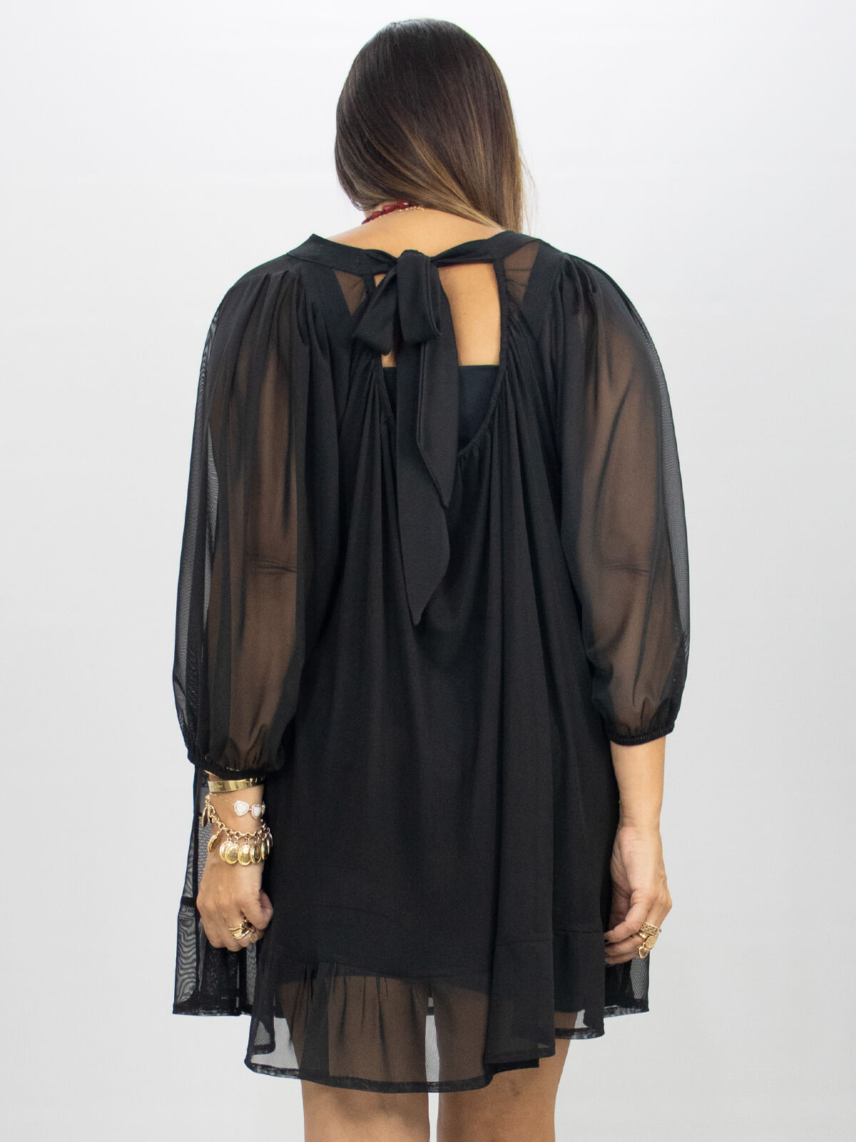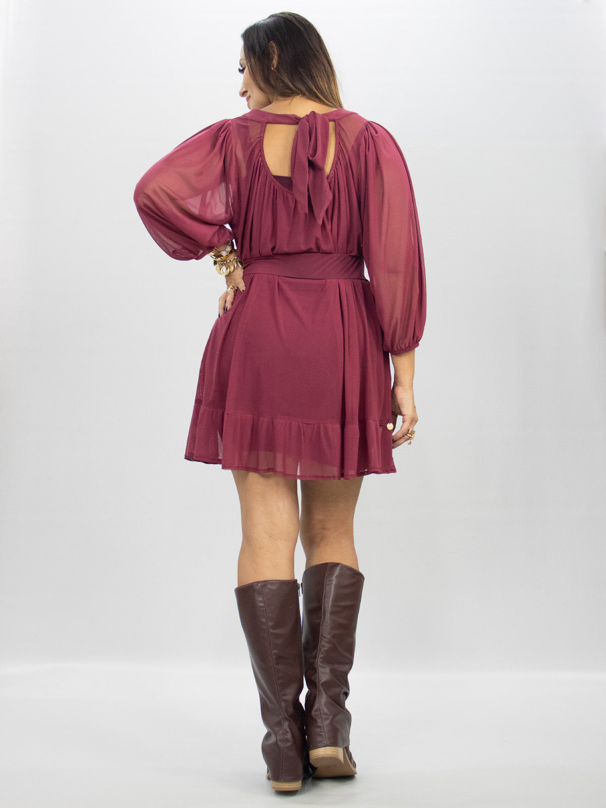 O Vestido Sienna é um vestido delicado feito com tulê, possui uma transparência sutil, combinada com um forro suave, seu decote é arredondado, com mangas longas. É uma peça de pura elegância. Conta com o detalhe do cinto, delicadamente definindo a silhueta. Um look que mistura romance e modernidade. ACOMPANHA FORRO