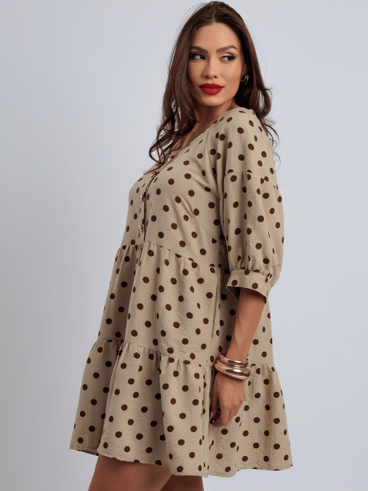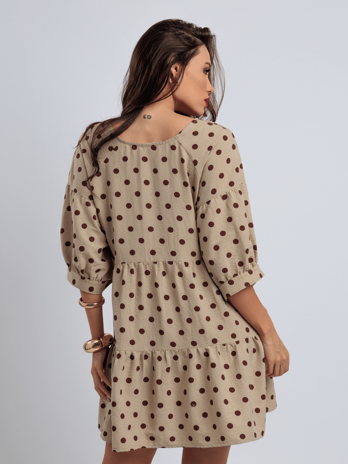 Com estampa de poá e modelagem soltinha, o Maria é sinônimo de conforto, movimento e leveza.